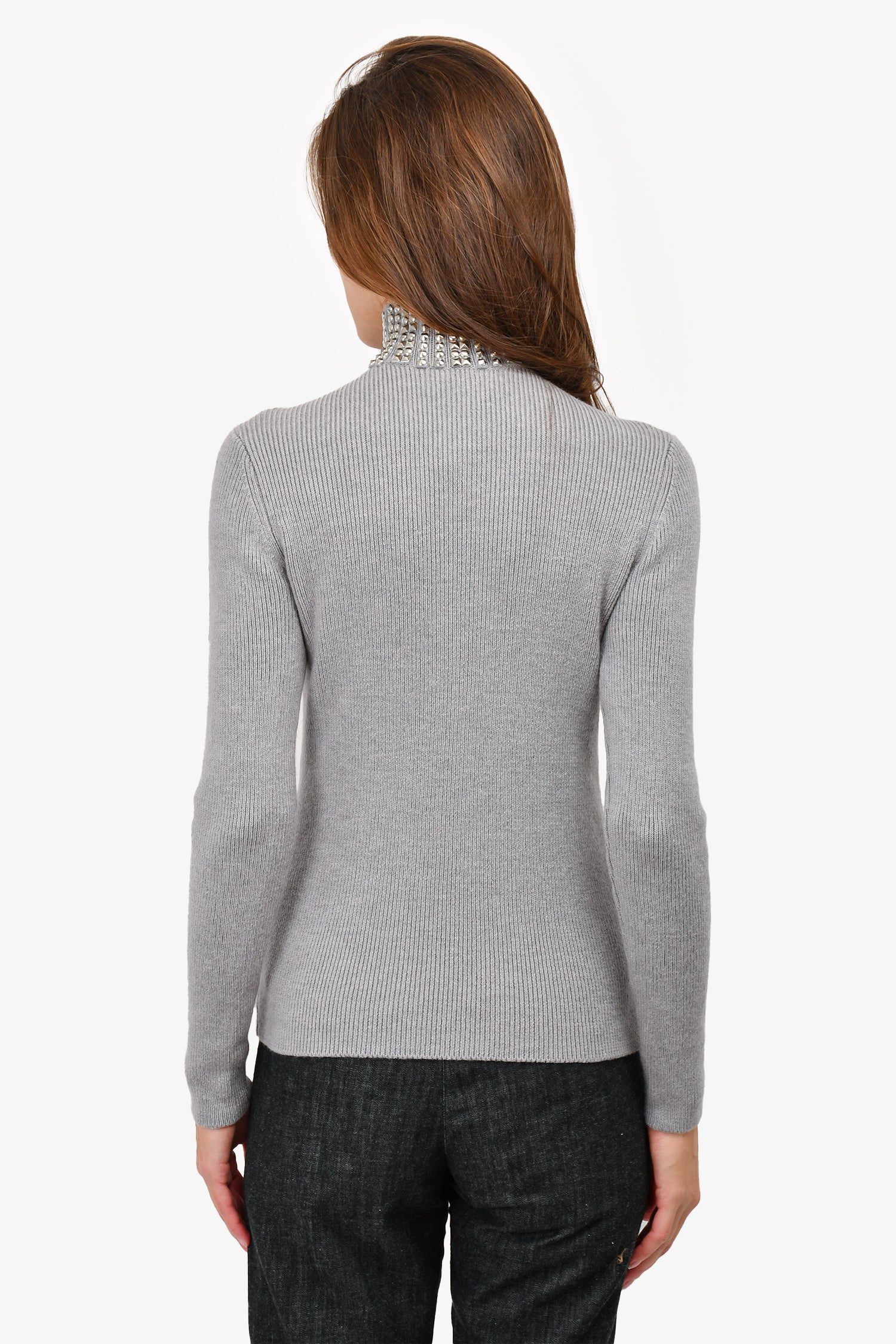 Maje Grey Knit Quarter Zip Studded Sweater Size 3
