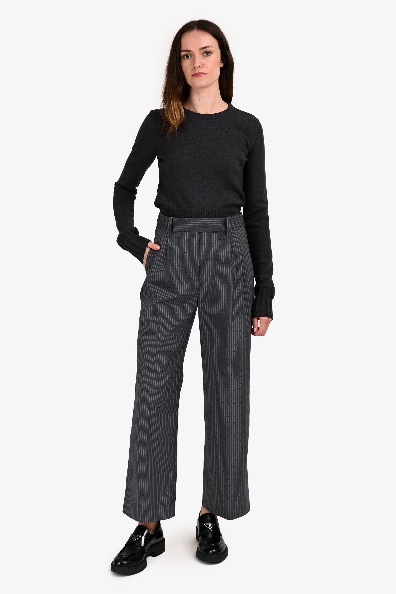 Maje Grey Pinstripe Embroidered Trousers Size 36