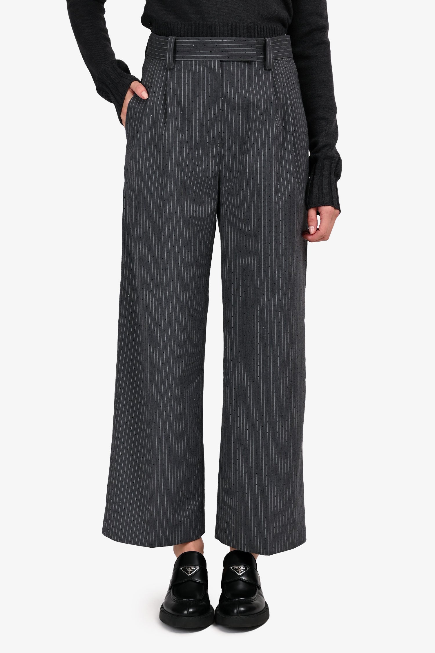 Refresh availabilityMaje Grey Pinstripe Embroidered Trousers. Pull-on with concealed front zip and hook closure. Mid-rise waist with belt loops. Straight leg. 2 side slip pockets. Tonal stitching.