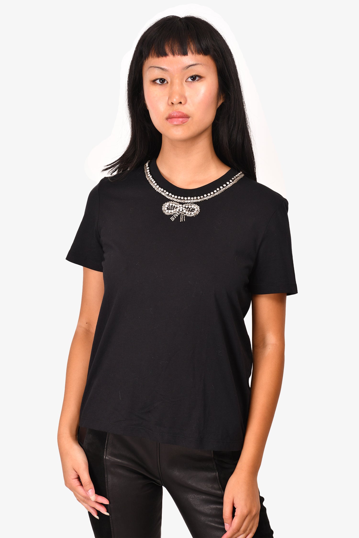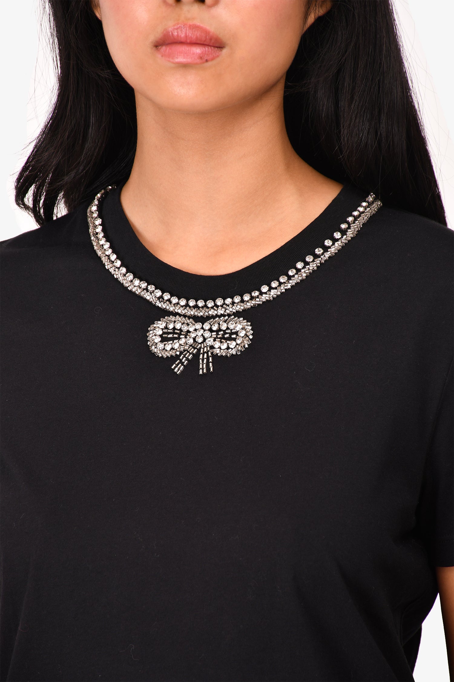 Refresh availabilityMaje Heart Crystal T Shirt. Tonal stitching. Round neck. Short sleeve. Crystal embellishment.