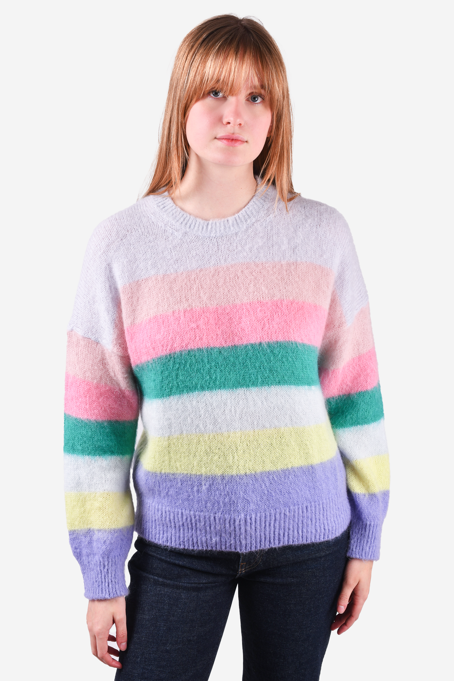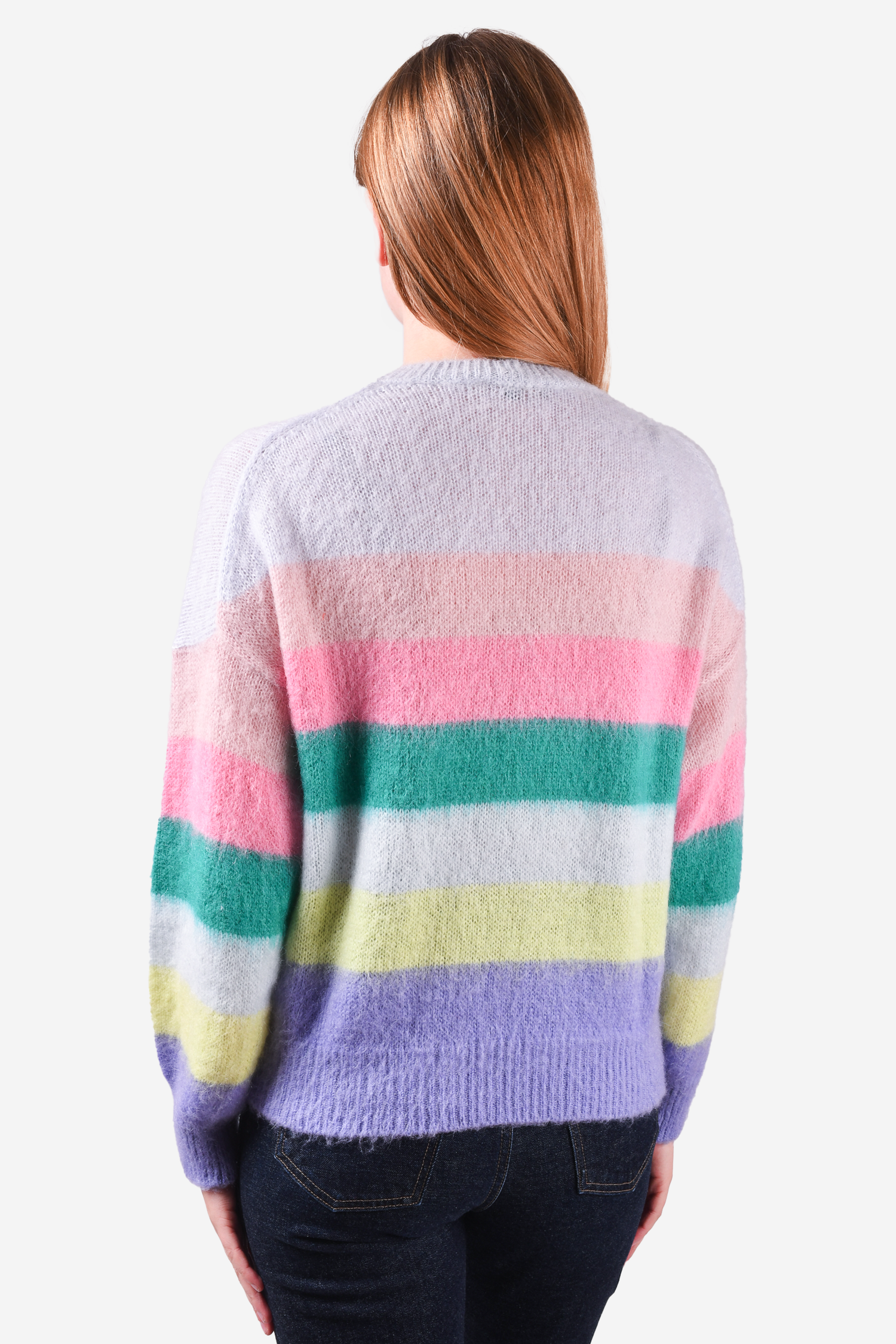 Maje Multicoloured Knit Sweater. Pull-on. Round neck. Ribbed neck, cuffs and hem. Tonal stitching.