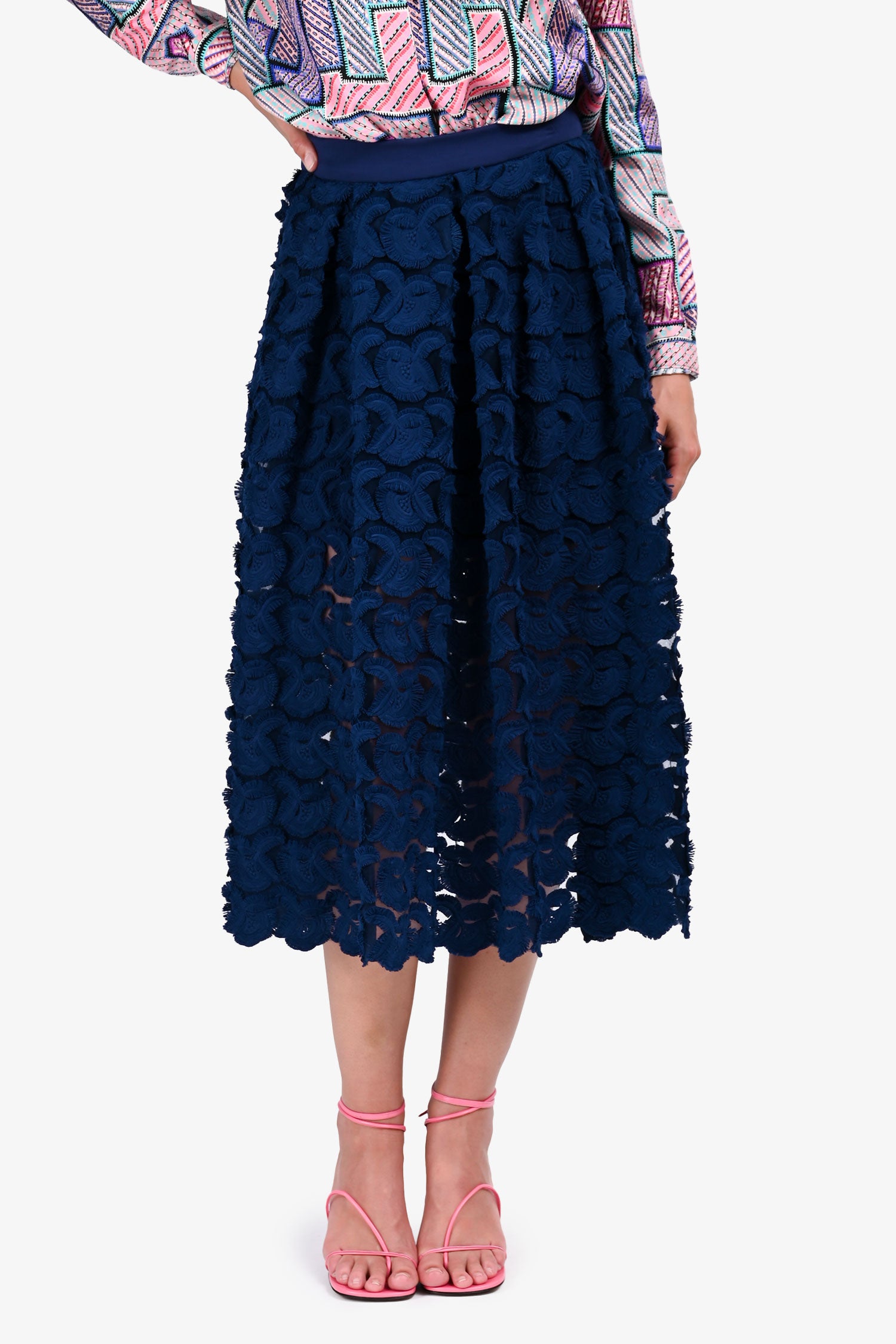 Refresh availabilityMaje Navy Pattern Detailed Midi Skirt. Back zip closure. Partially lined. Tonal stitching.