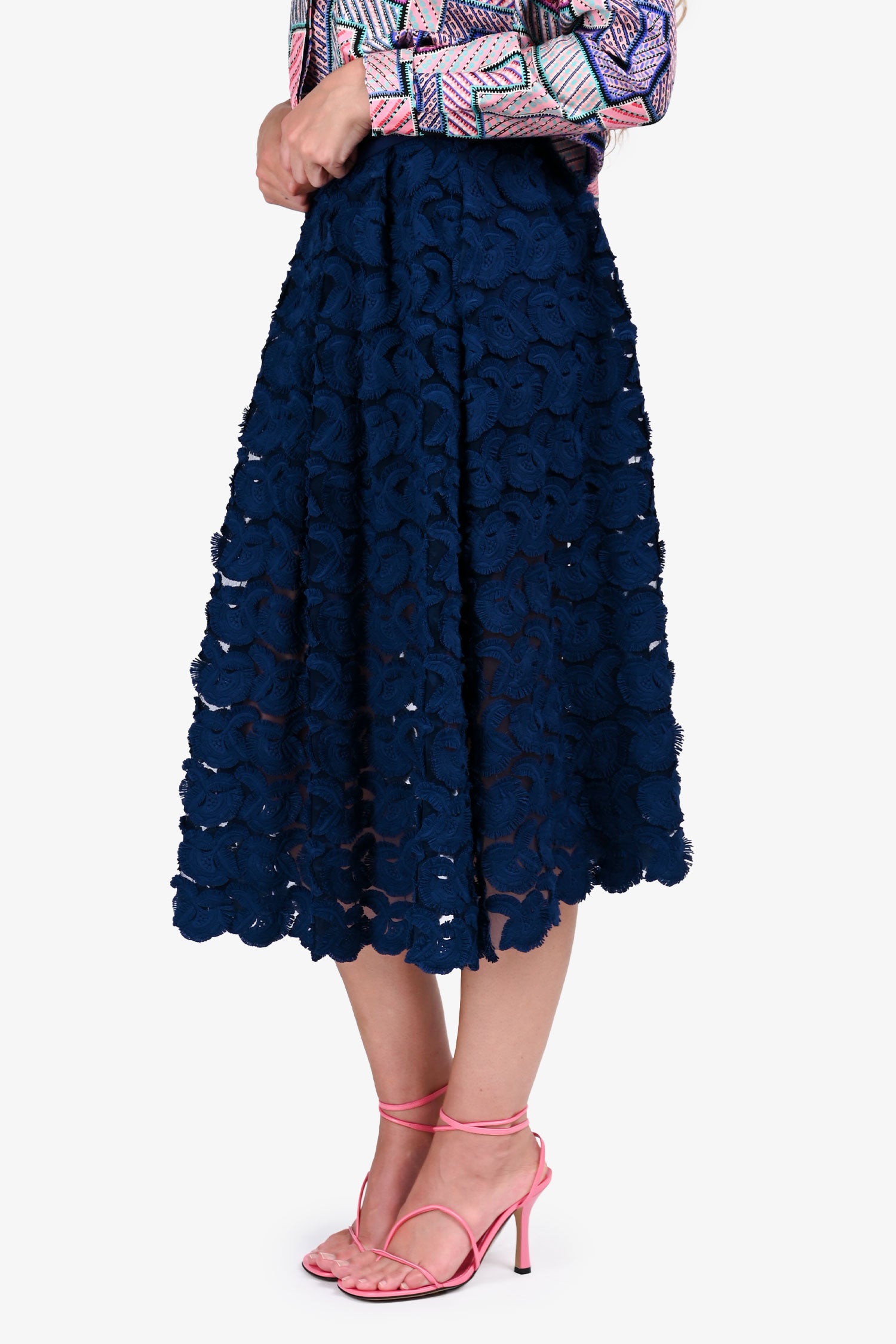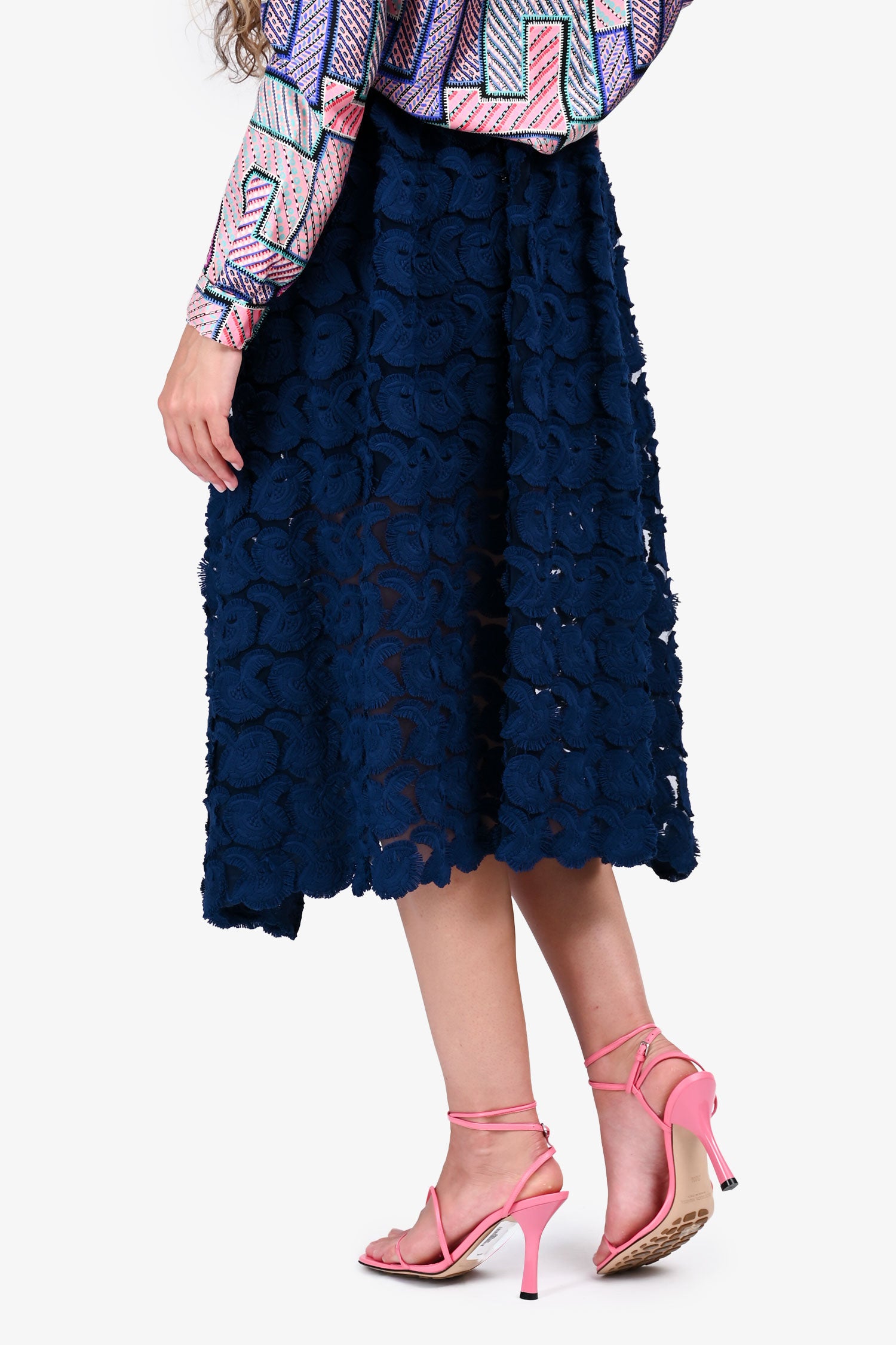 Maje Navy Pattern Detailed Midi Skirt Size 36