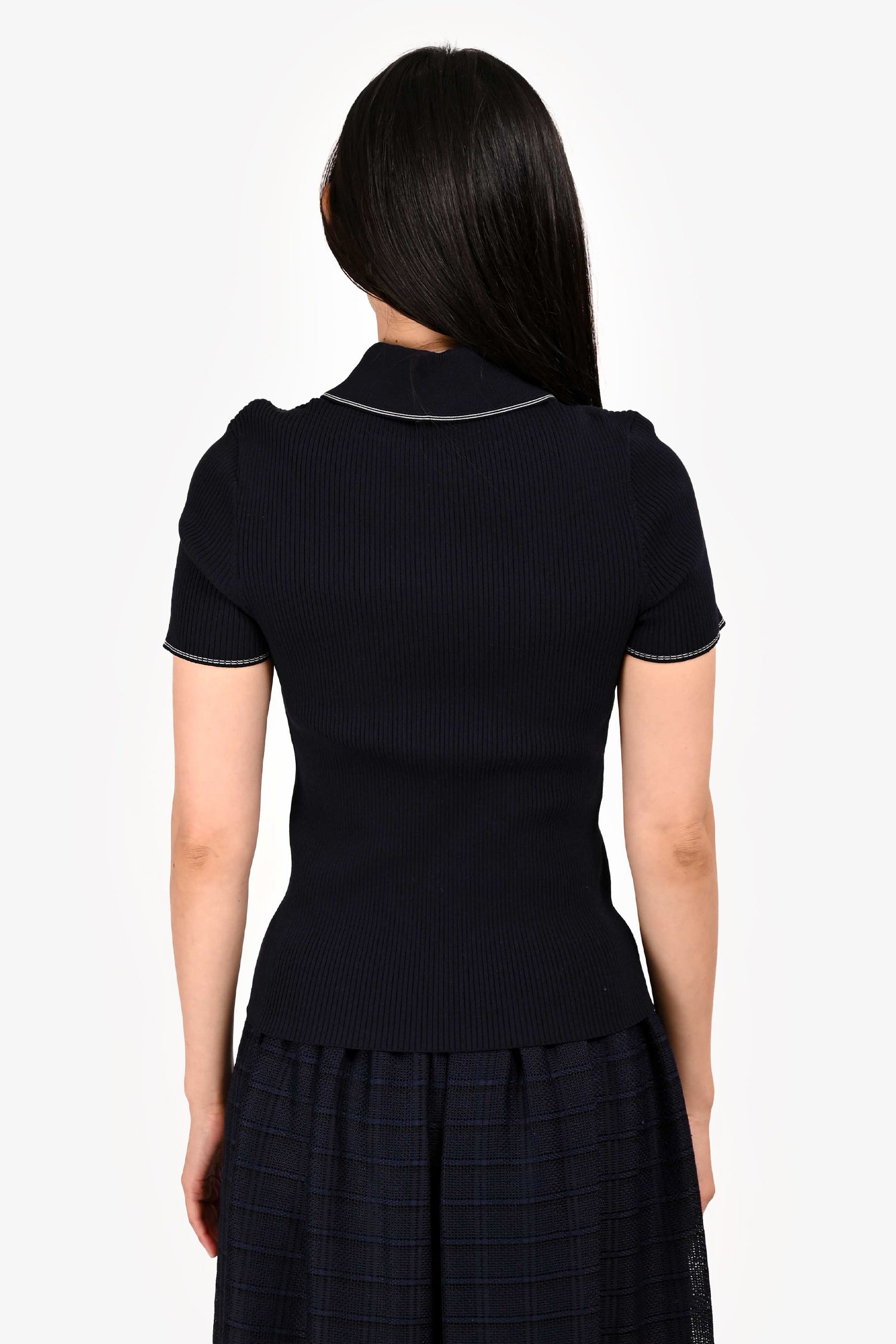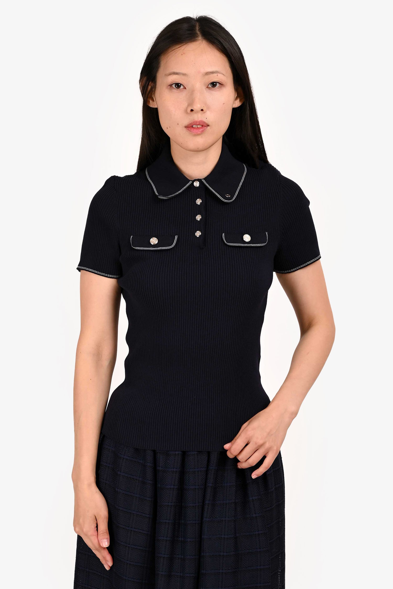 Maje Navy Ribbed Knit Buttoned Top Size 2