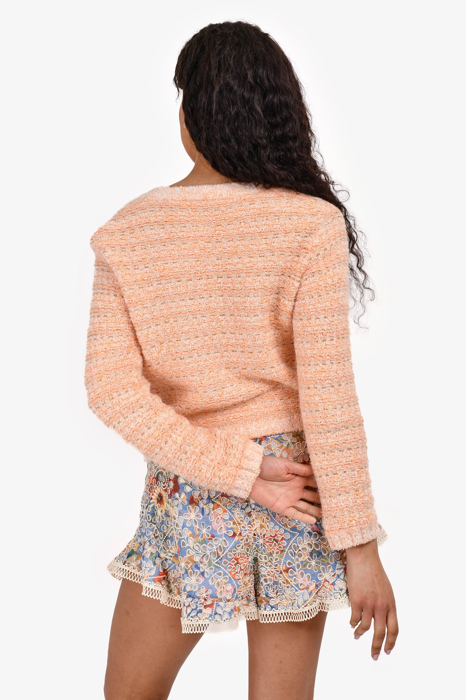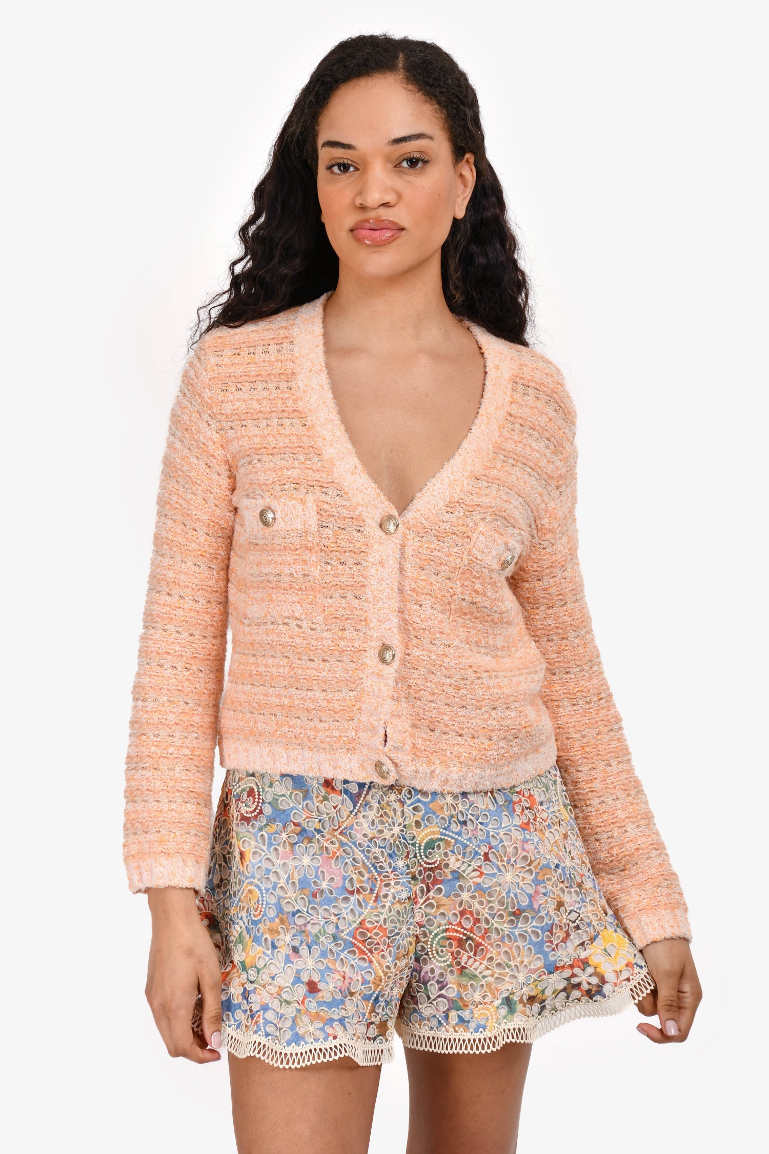 Refresh availabilityMaje Peach Knit Cardigan. Button front closure. Long sleeves with ribbed cuffs. Tonal stitching.