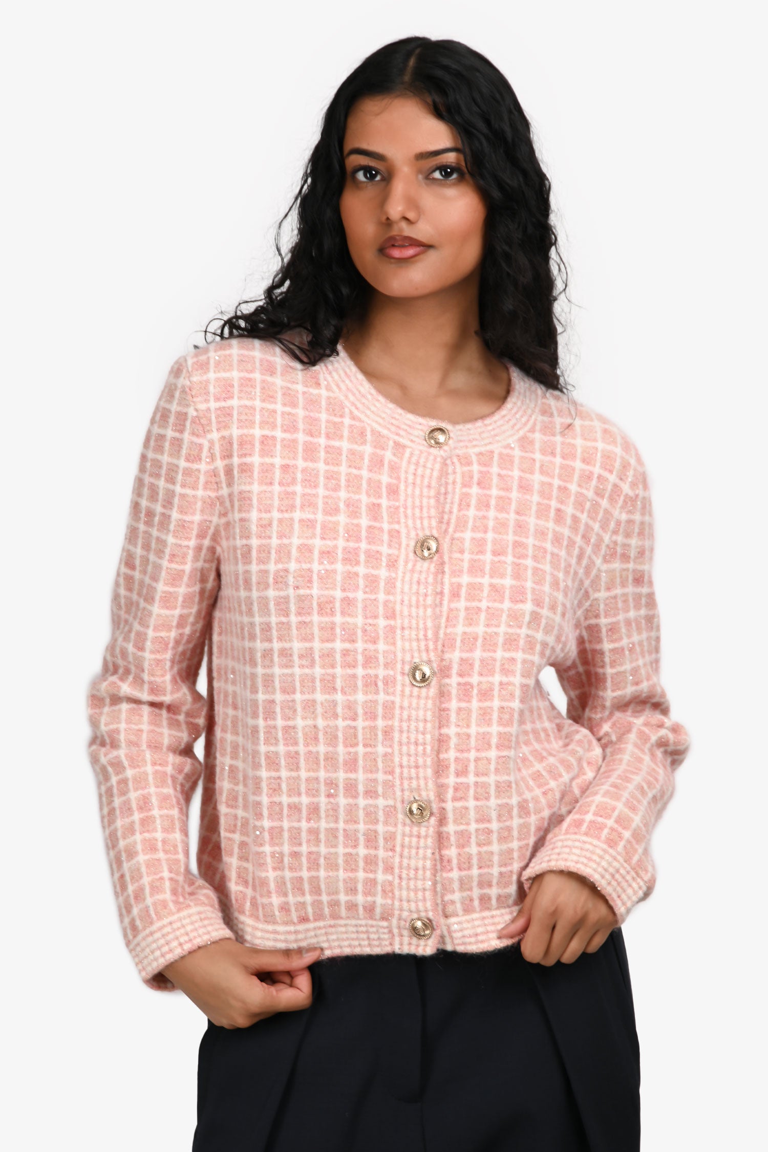 Maje Pink Tweed Style Button-Up Cardigan Size 2