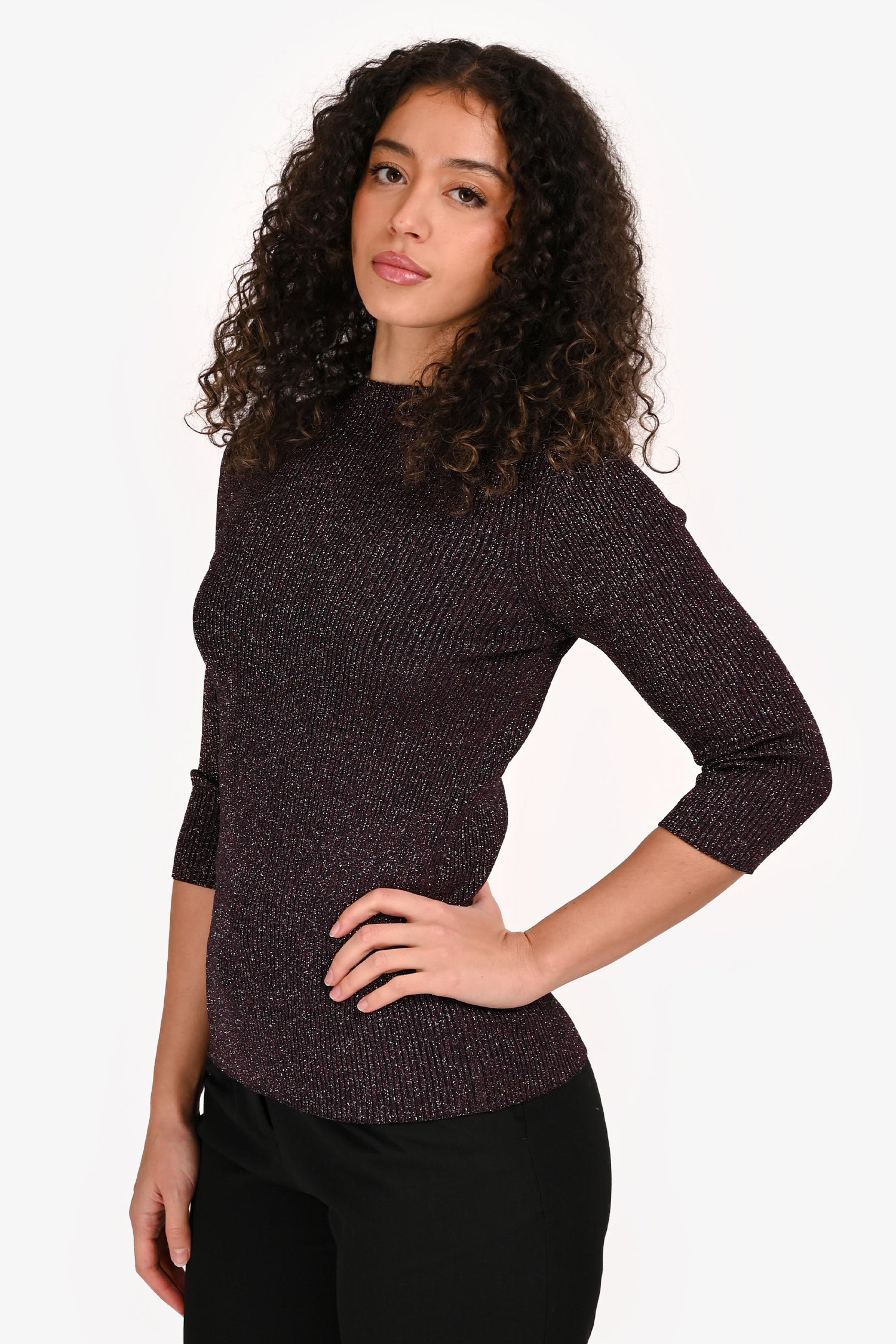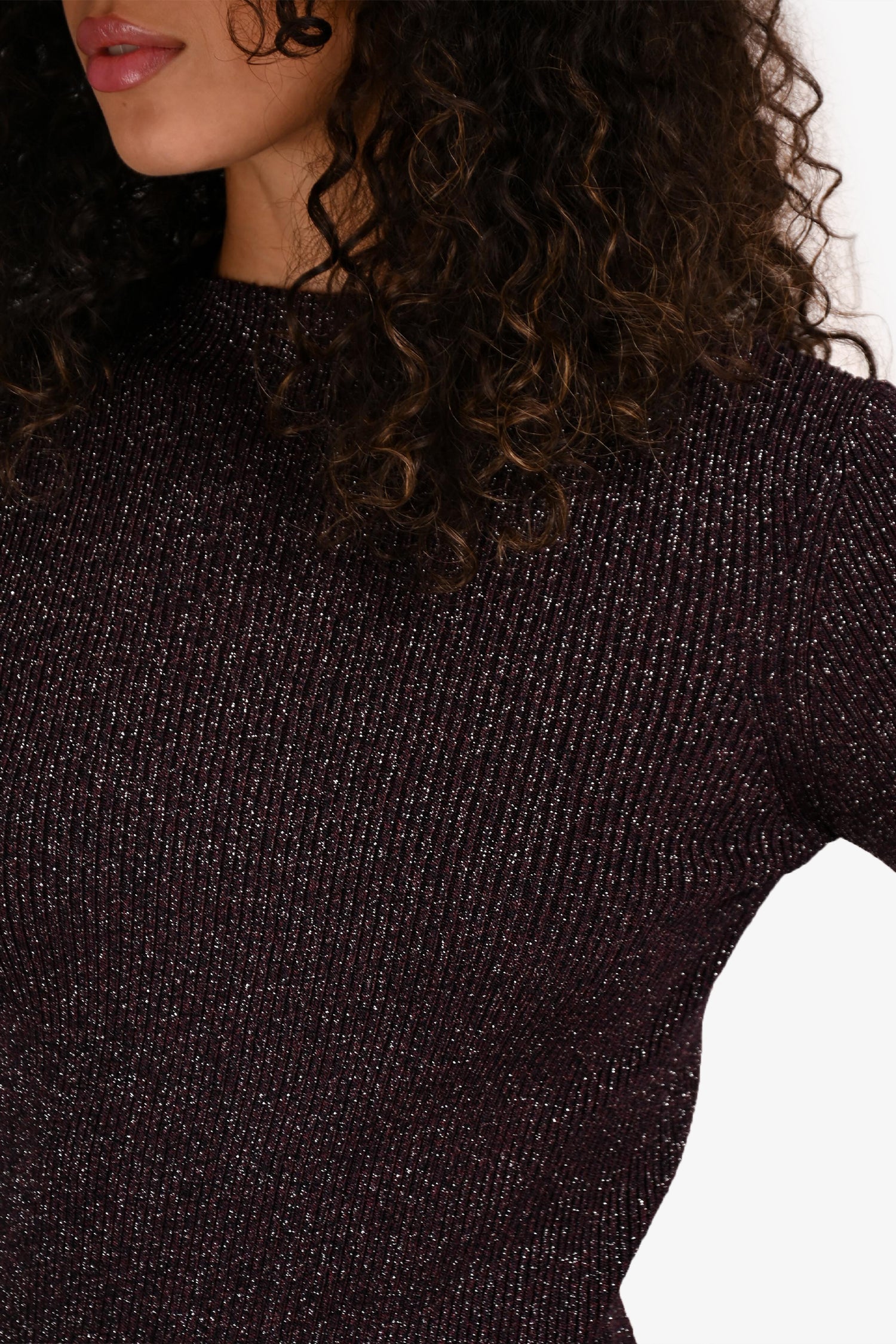 Refresh availabilityMaje Purple Metallic Ribbed Top. Pull-on. Round neckline. Tonal stitching.