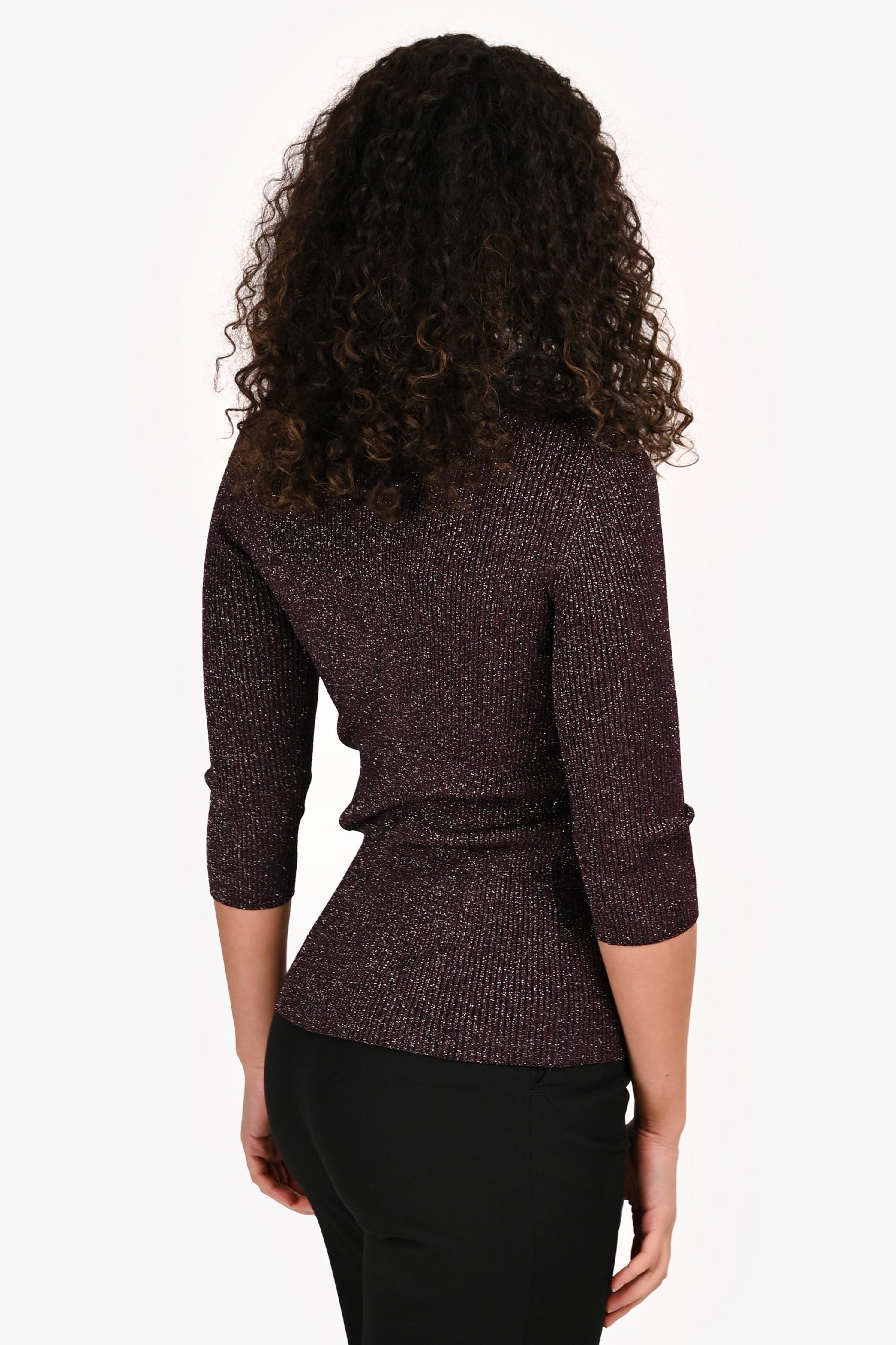 Maje Purple Metallic Ribbed Long Sleeve Top Size 2