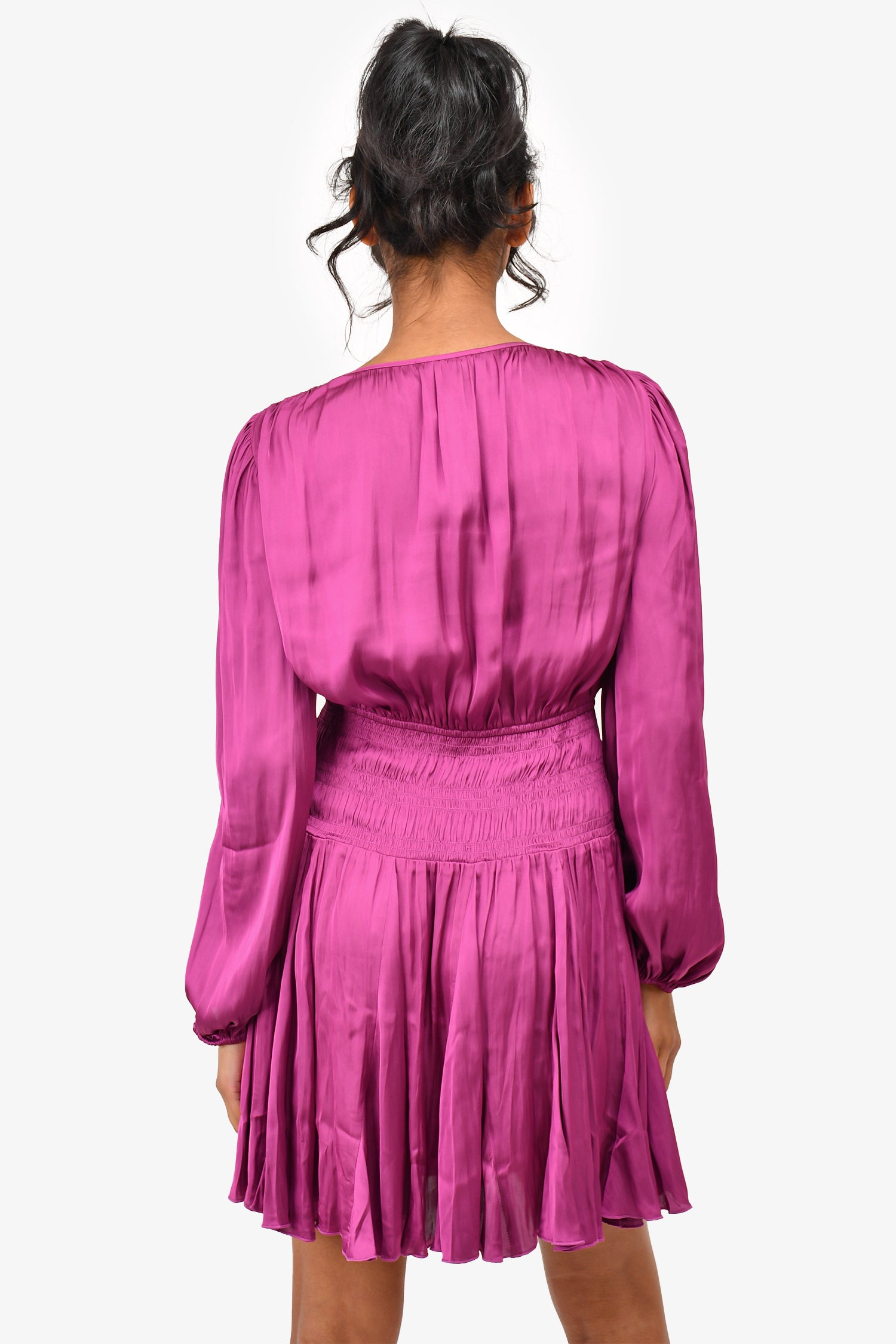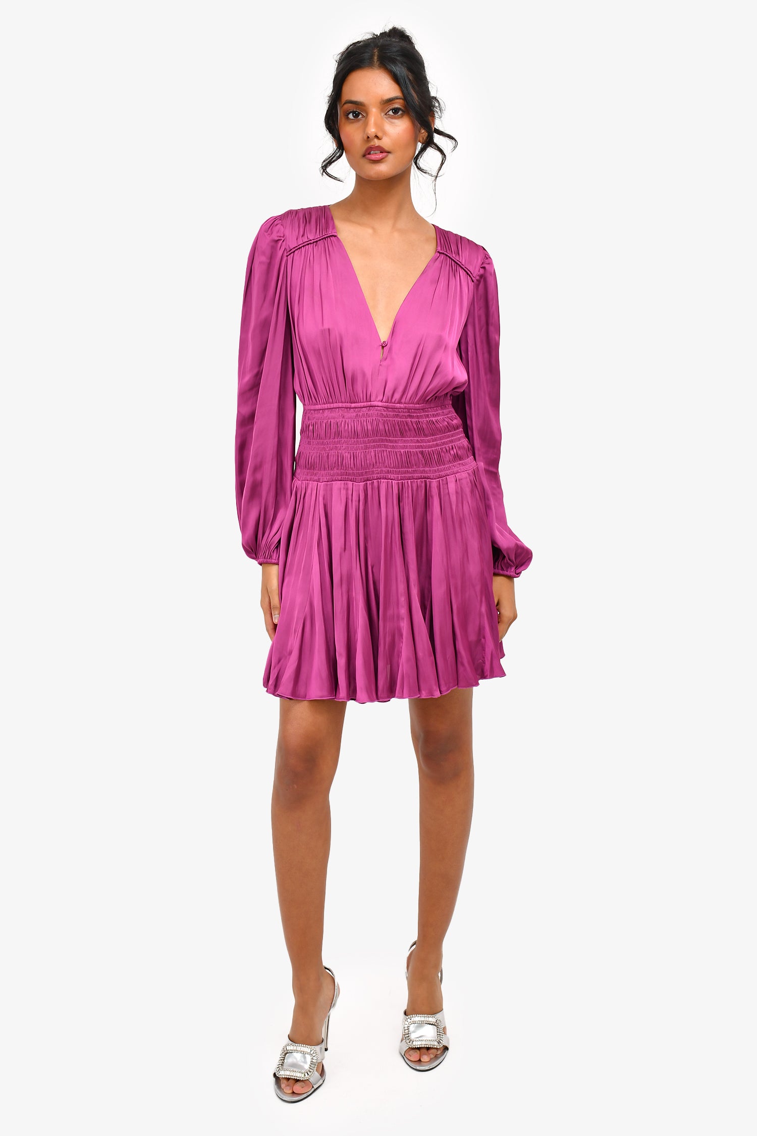 Refresh availabilityMaje Purple Satin Cinched Mini Dress. Button closure at neckline. Tonal stitching.
