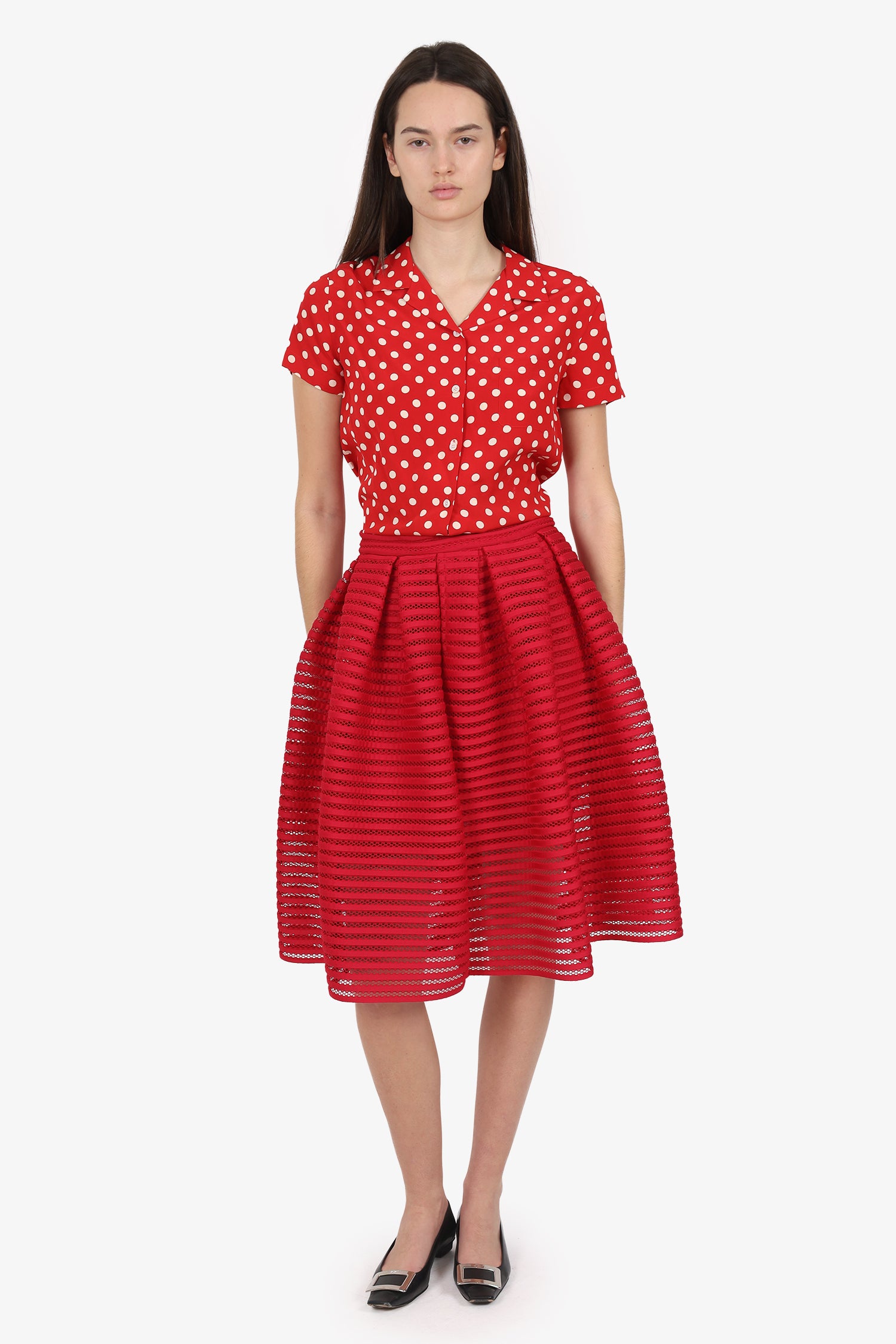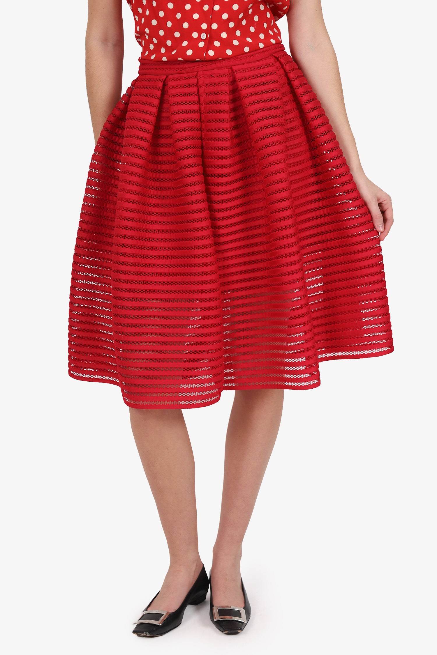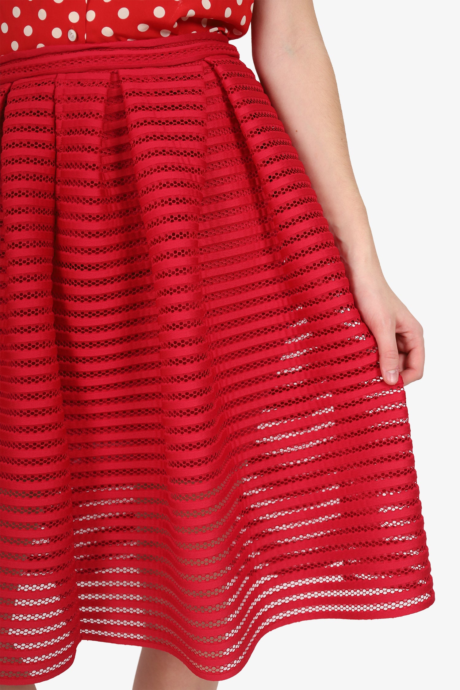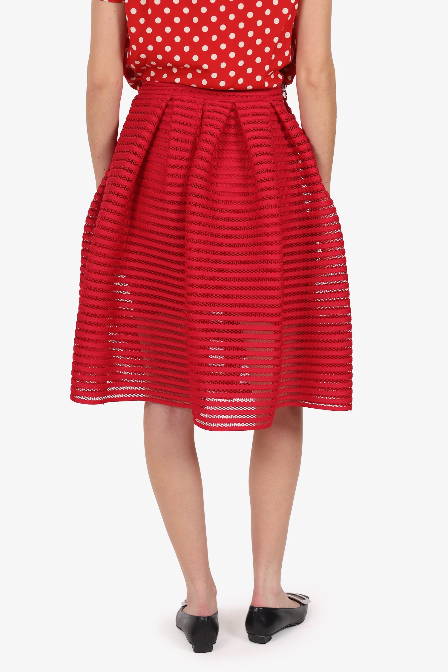 Refresh availabilityMaje Red Lace Skirt. Slip-on. Rear zip closure. Lined interior. Silver-tone hardware. Tonal stitching.