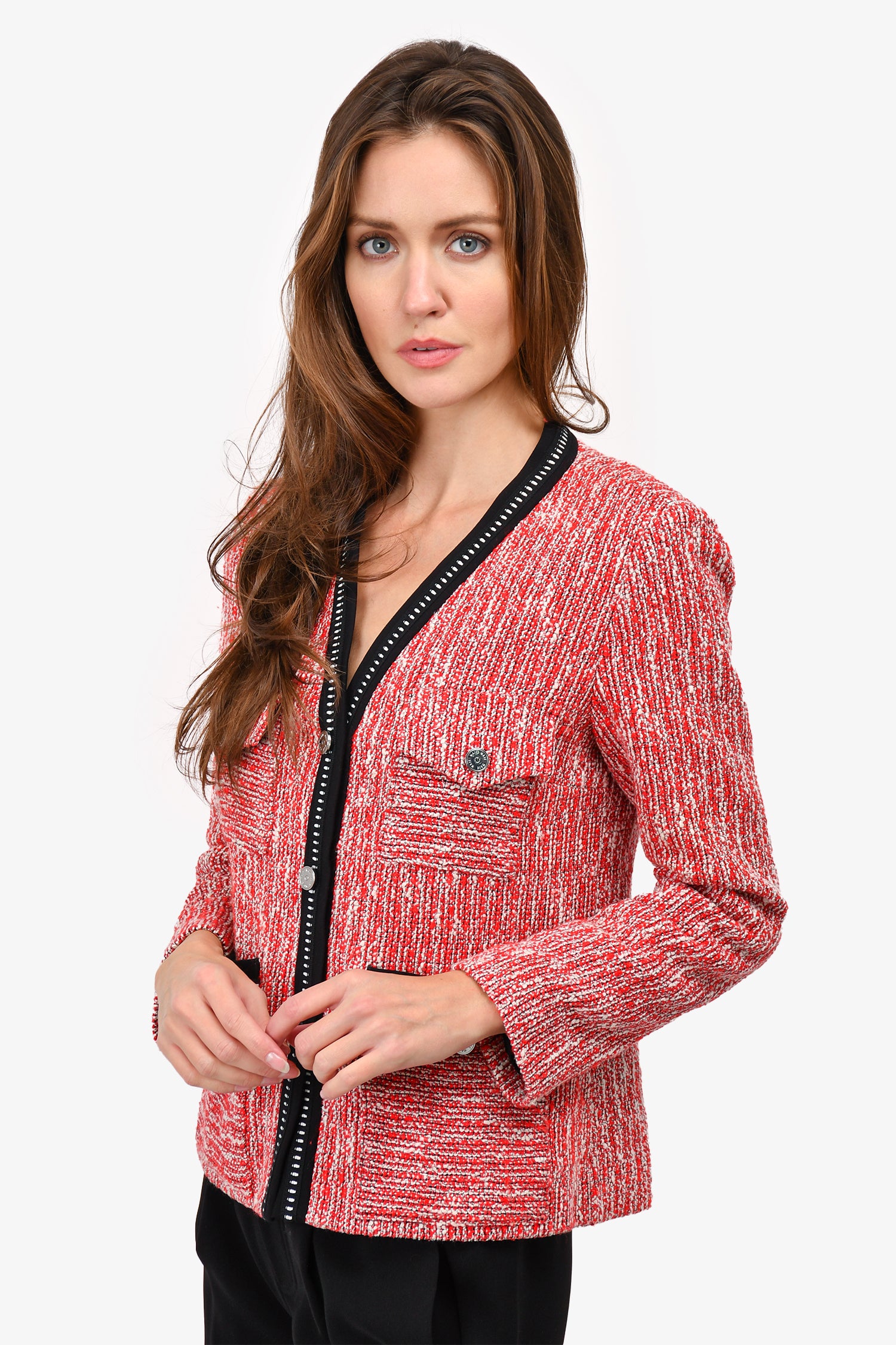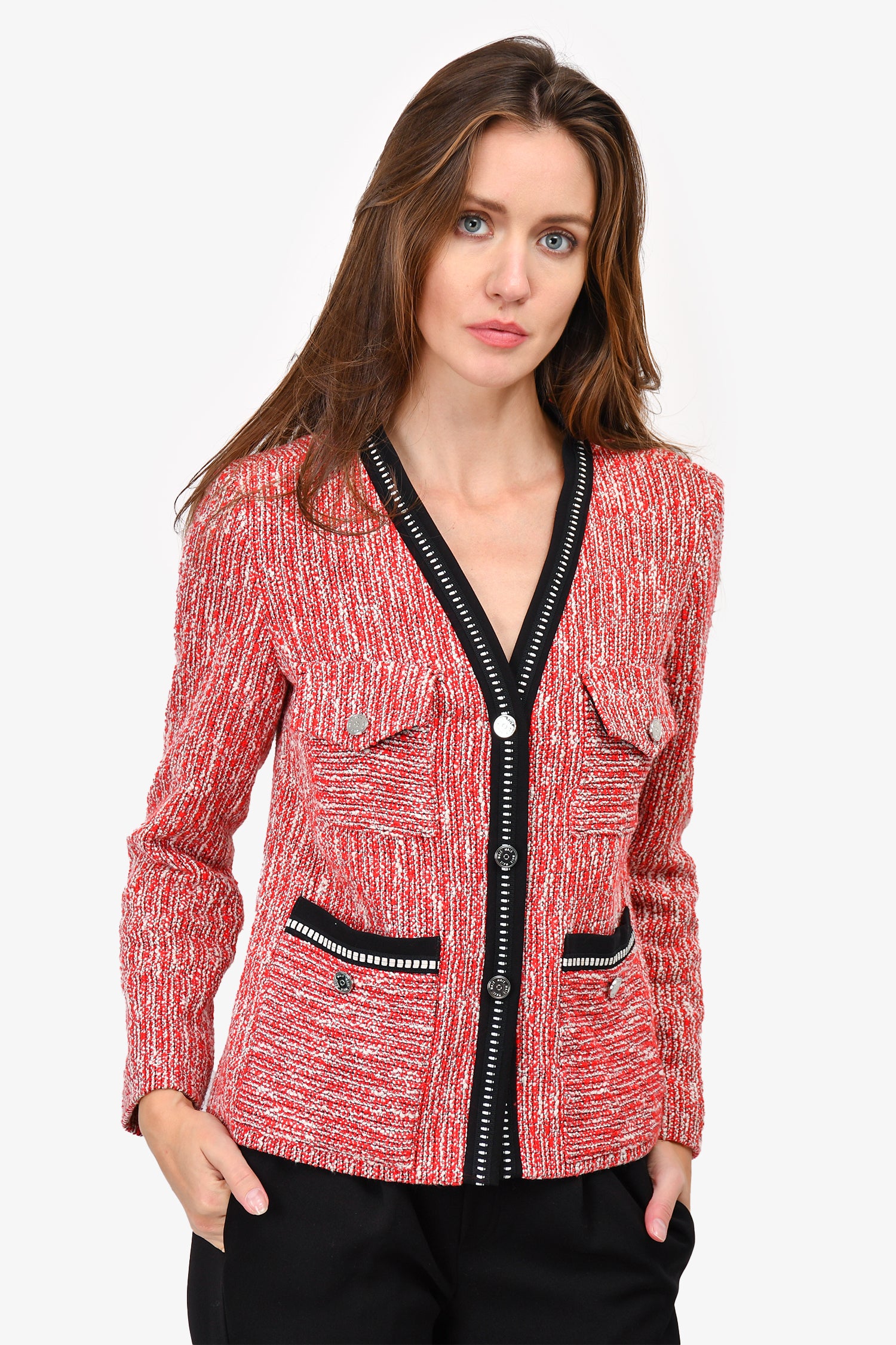 Refresh availabilityMaje Red/White Tweed 4 Pocket Blazer. Silver-tone hardware. 4 front pockets; 2 hand pockets and 2 breast pockets with snap button closures. Lined.