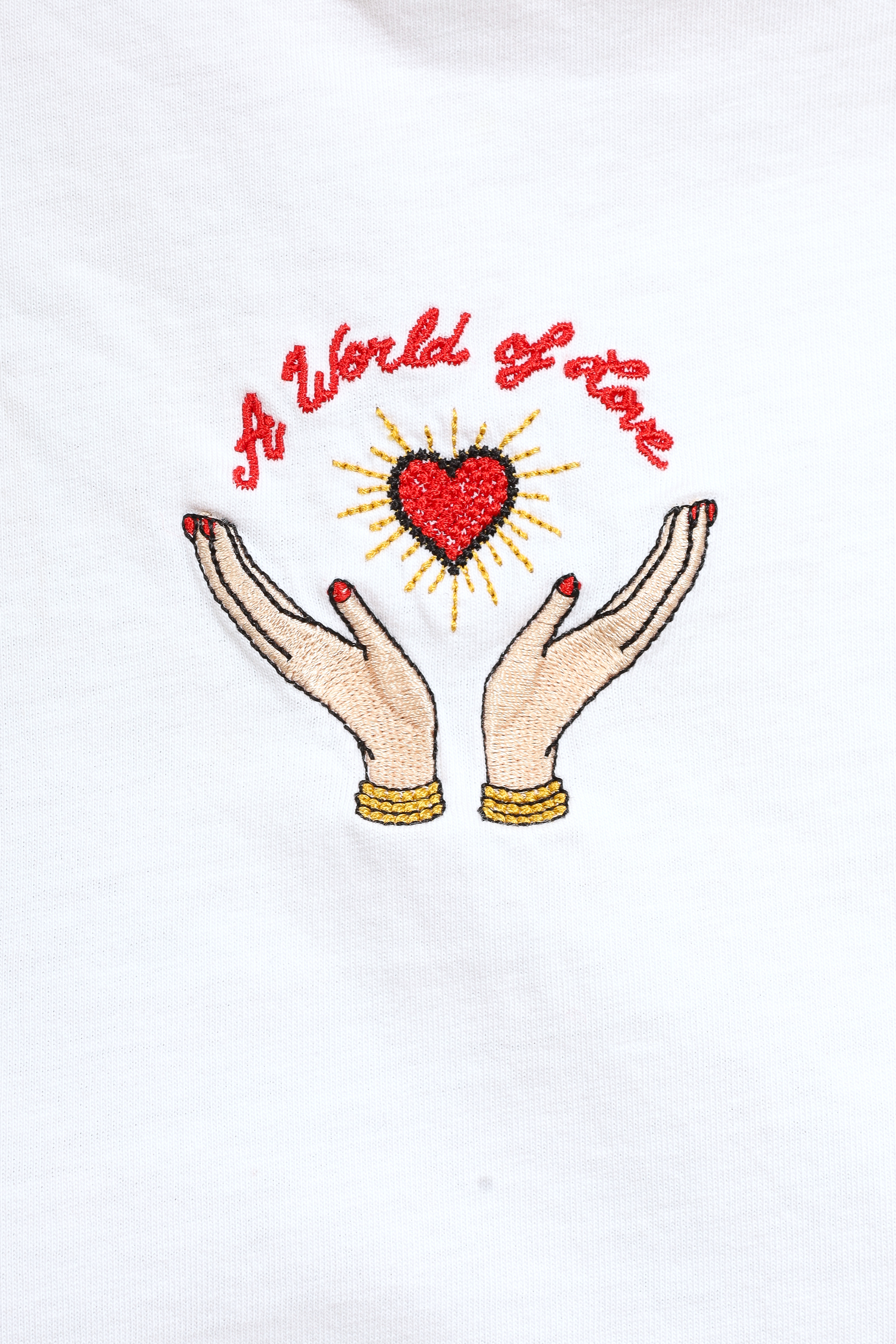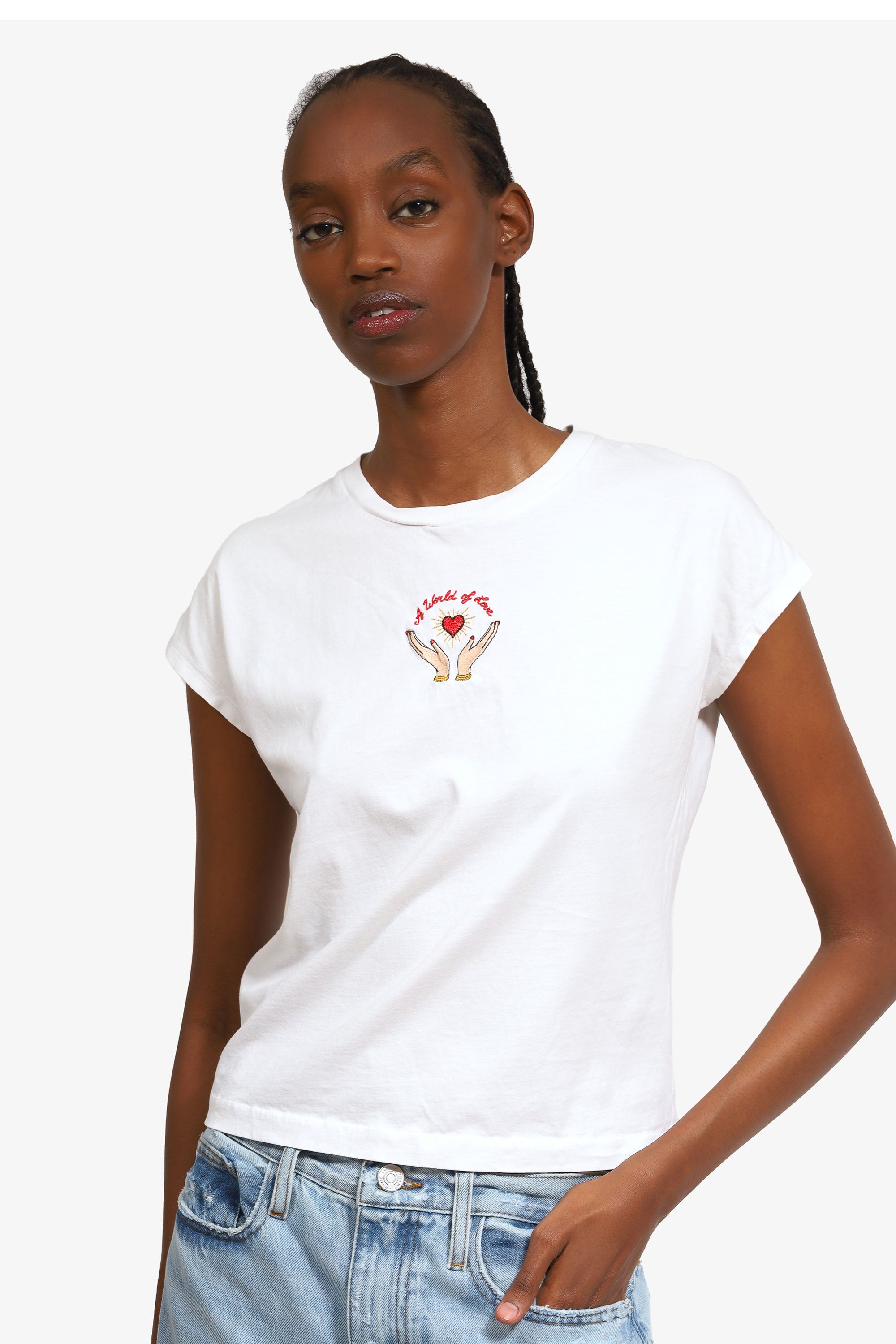 Refresh availabilitySandro White 'A World Of Love' Embroidery T-Shirt. Round neck. Ribbed neckline. Unlined. Tonal stitching.