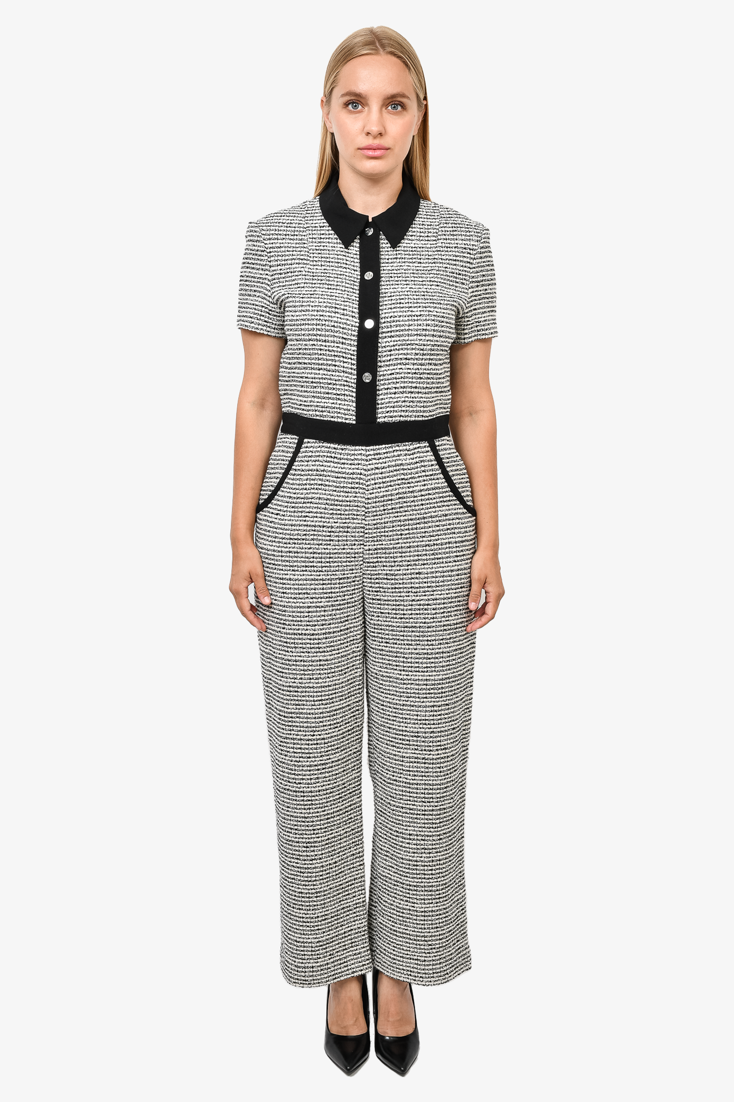 Maje White/Black Tweed Collared Jumpsuit Size 40