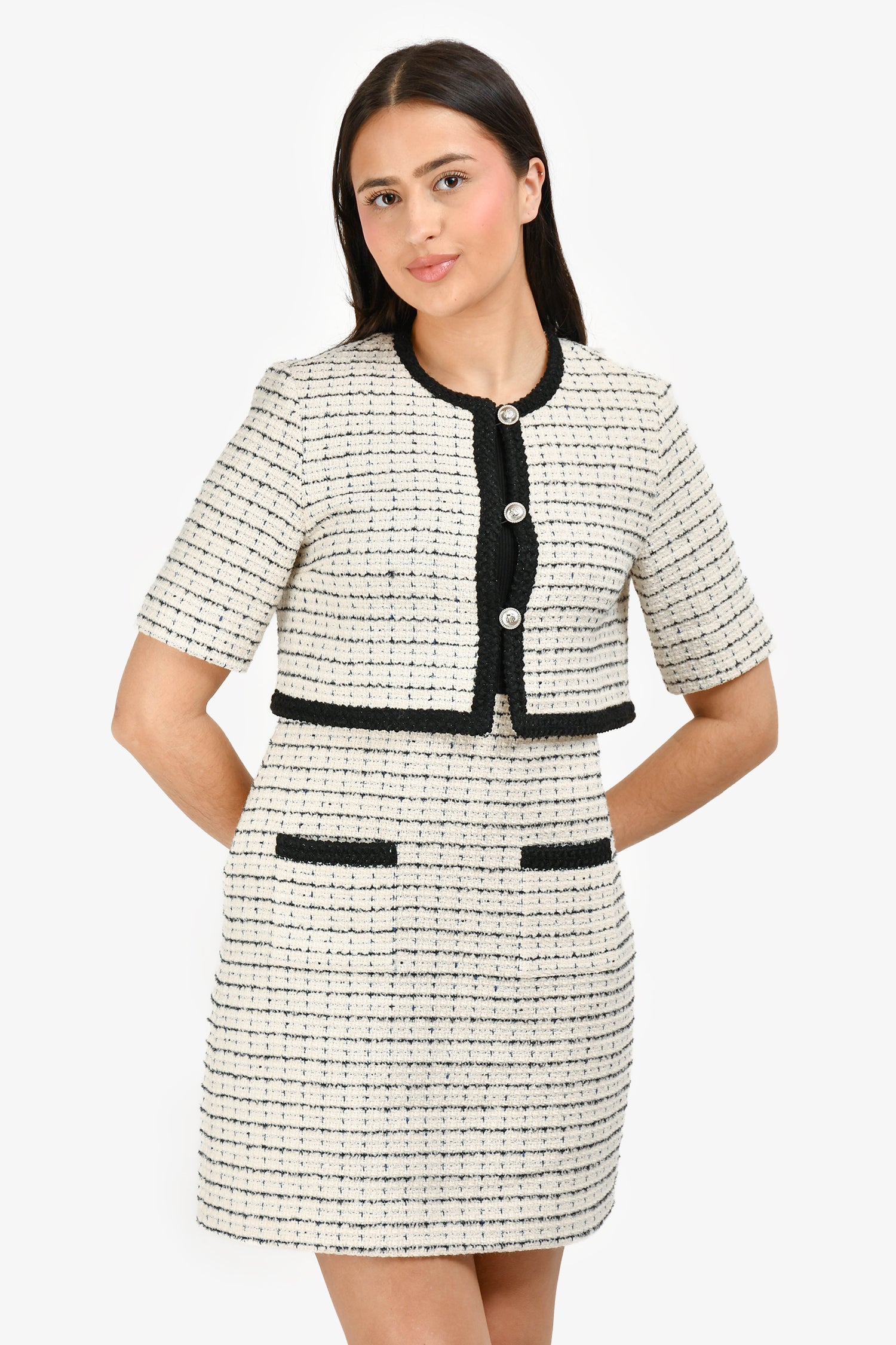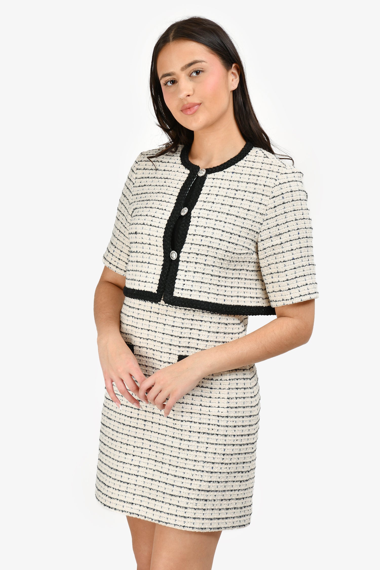 Maje White/Black Tweed Dress + Cardigan Set Size 40
