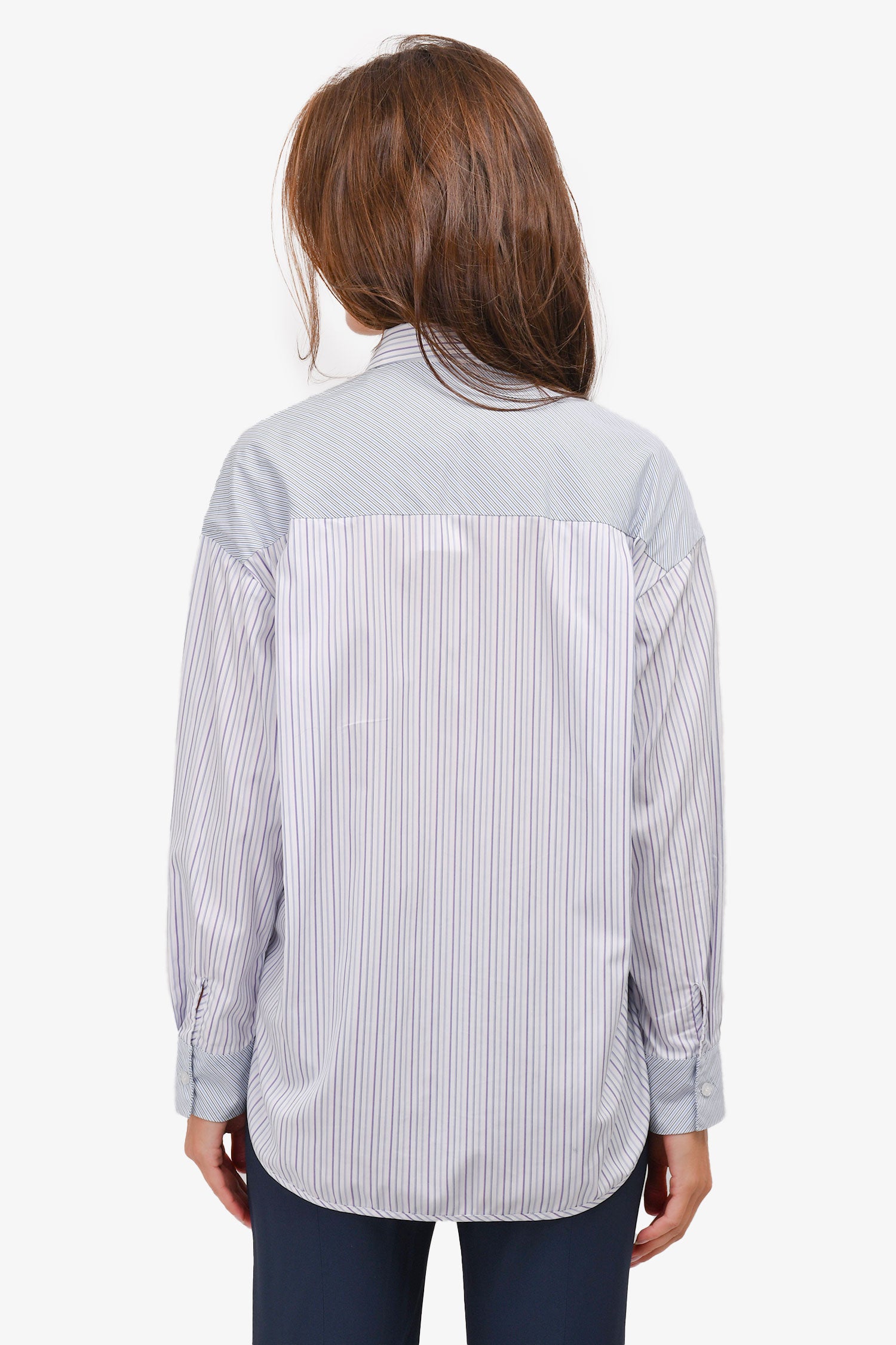 Maje White/Blue Striped Cotton Poplin Button-Up Shirt Size 1