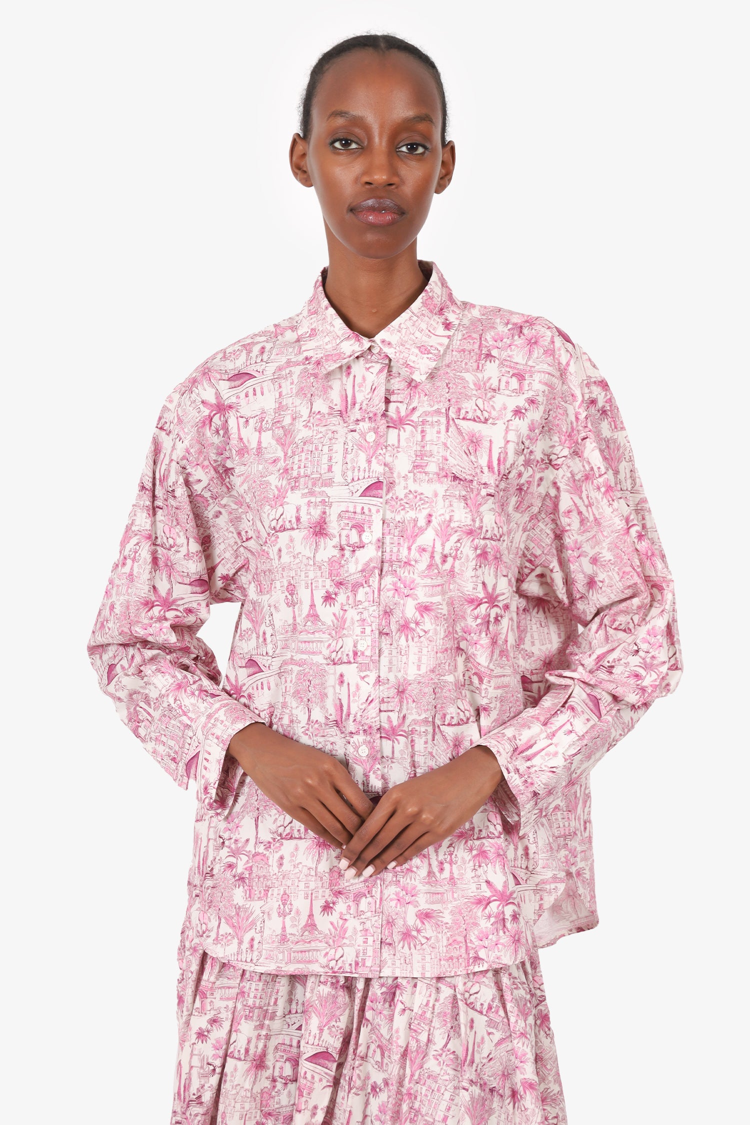 Maje White/Pink Cipunano Printed Shirt Size 3