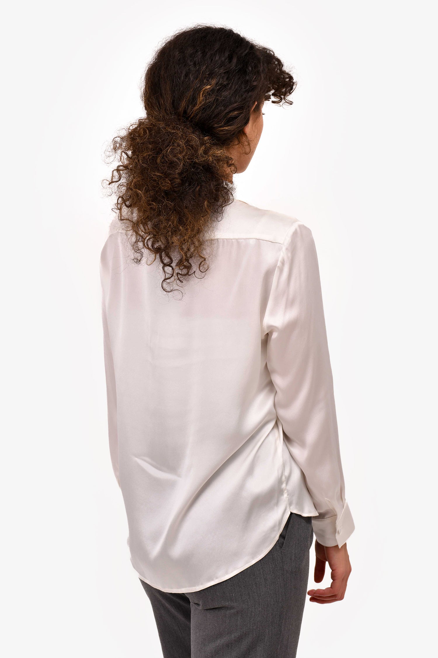 Refresh availabilityMaje White Silk Buttoned Down Shirt. Front button up closure. Tonal stitching.