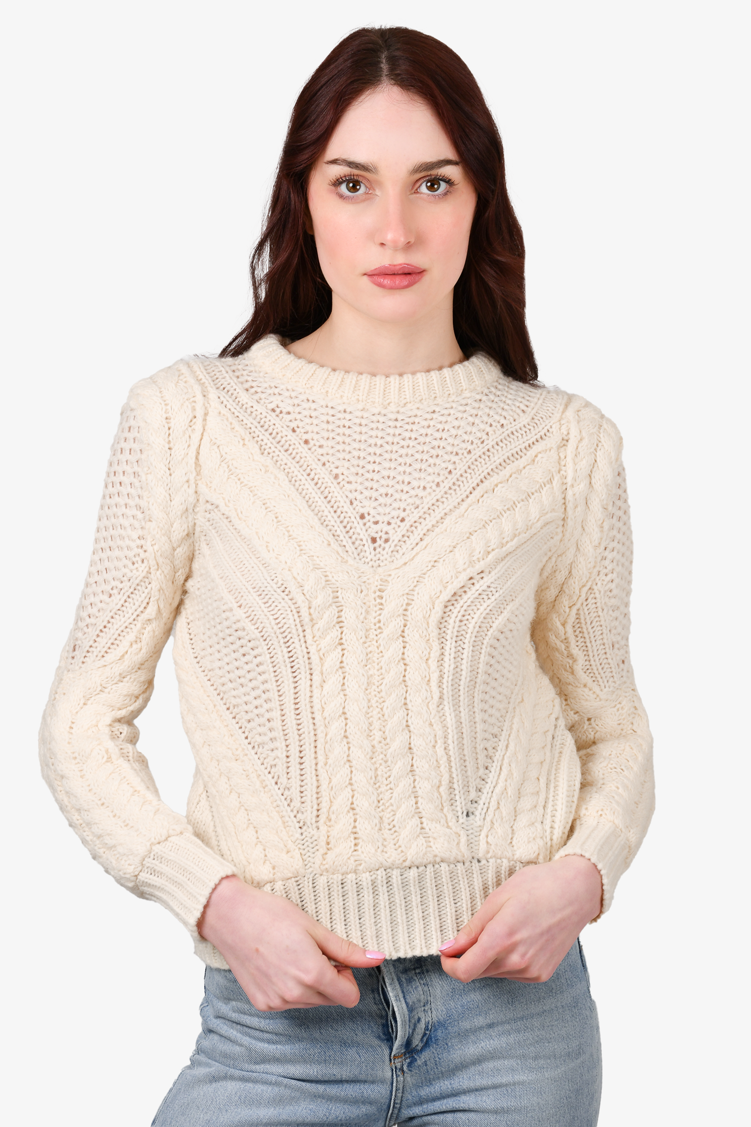 Maje White Wool/Alpaca Cable Knit Crewneck Sweater Size 1