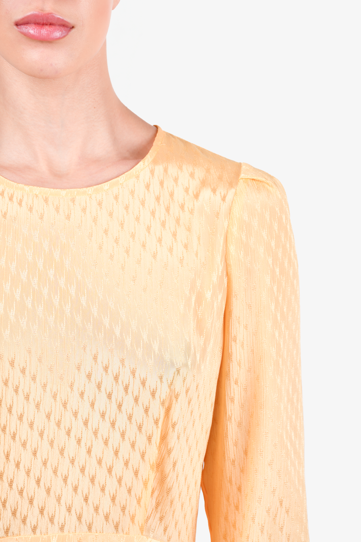 Refresh availabilityMaje Yellow Patterned Dress. Rear zip and hook closure. Round neck. Half-lined. Tonal stitching.