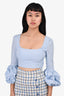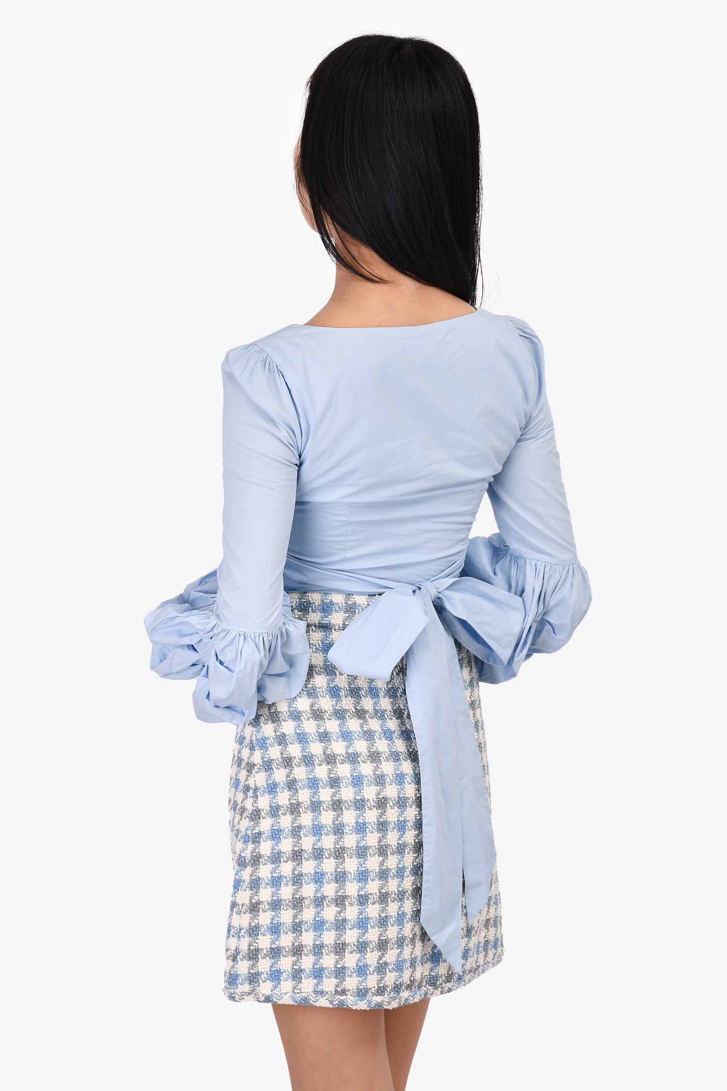 Refresh availabilityMajorelle Blue Square Neck Tie Around Cropped Top. Elasticized cuffs. Side zip closure.