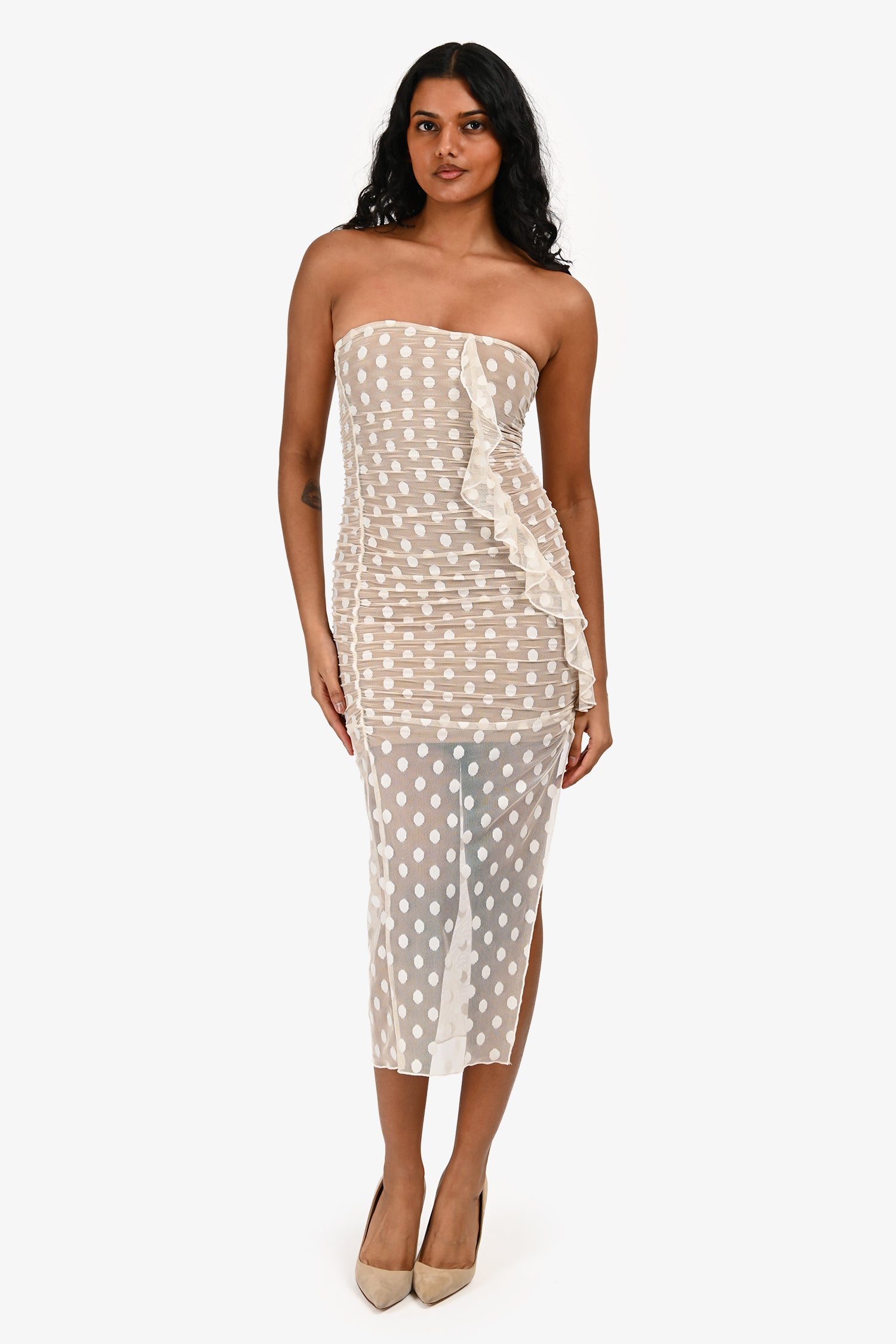 Majorelle White Polka Dot Sheer 'Brady' Strapless Midi Dress Size XS