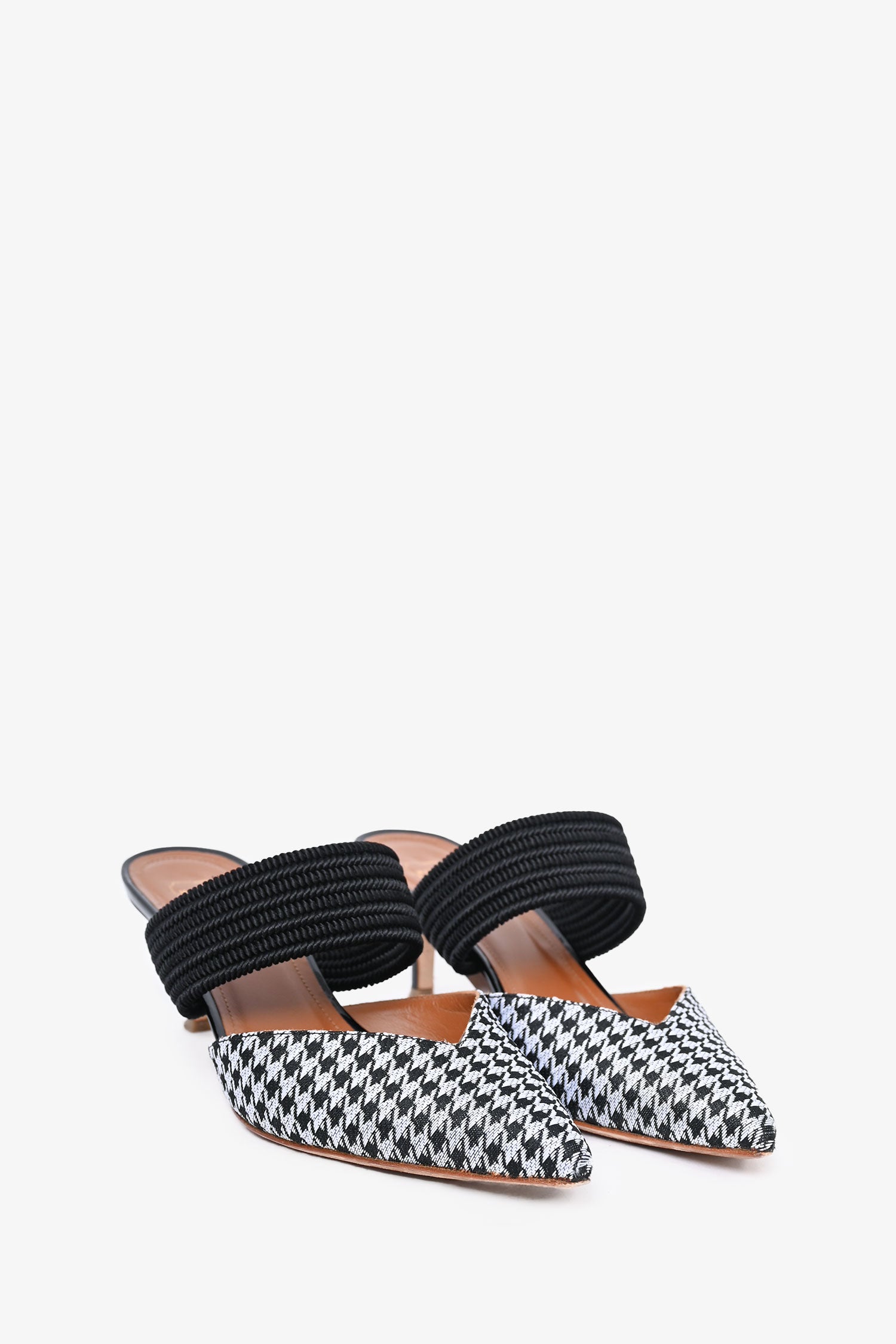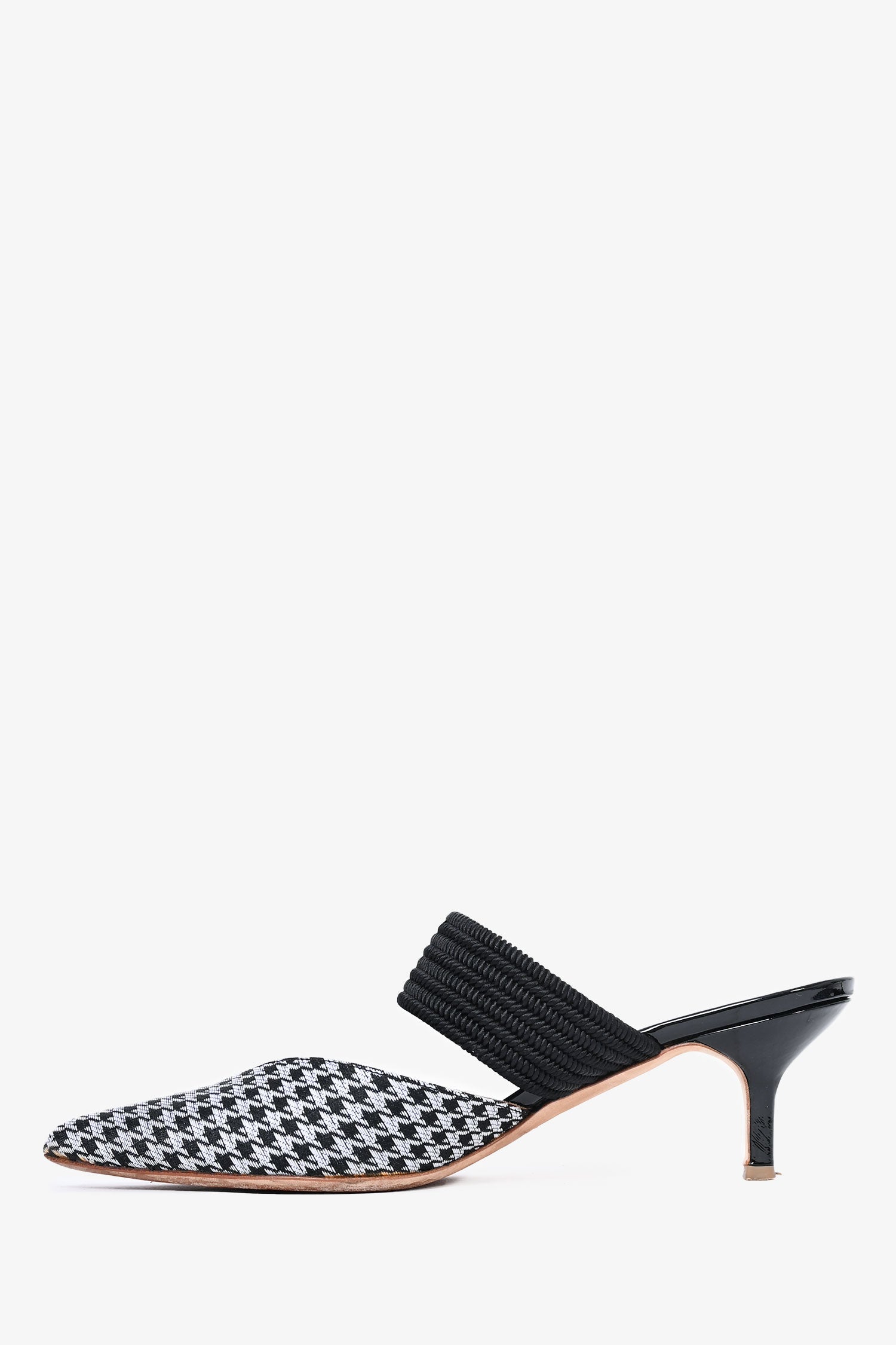 Refresh availabilityMalone Souliers Black/White Houndstooth Kitten Heels. Slip-on. Pointed toe. Open back.