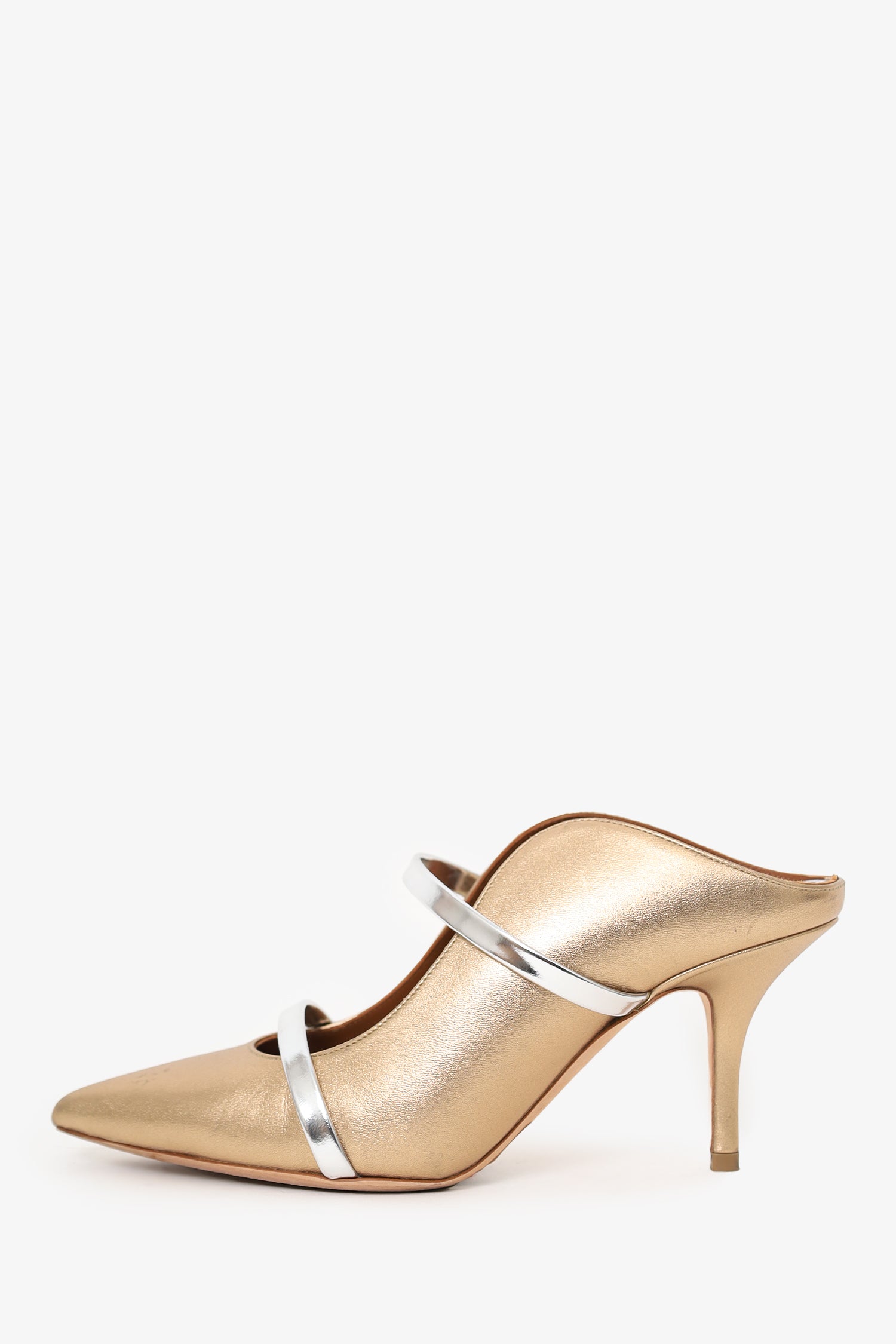 Refresh availabilityMalone Souliers Gold/Silver Heeled Pointed Mules. Slip-on. Pointed-toe. Elasticated rear strap. Tonal stitching.