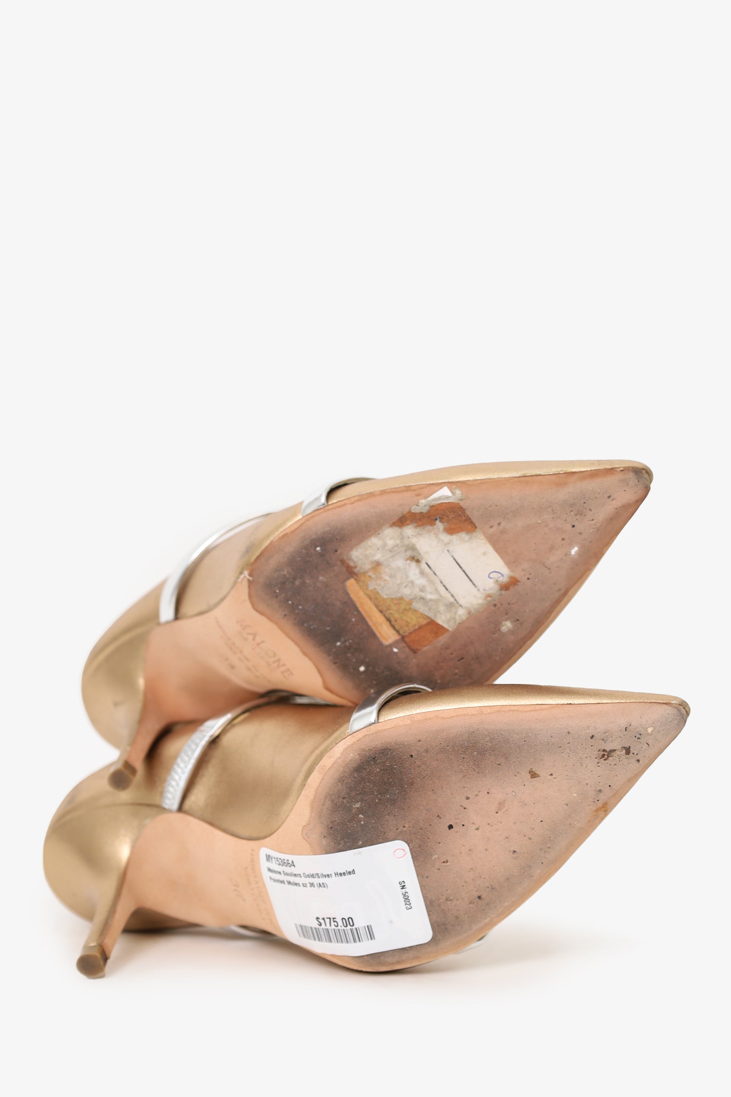 Malone Souliers Gold/Silver Heeled Pointed Mules Size 36 (As Is)