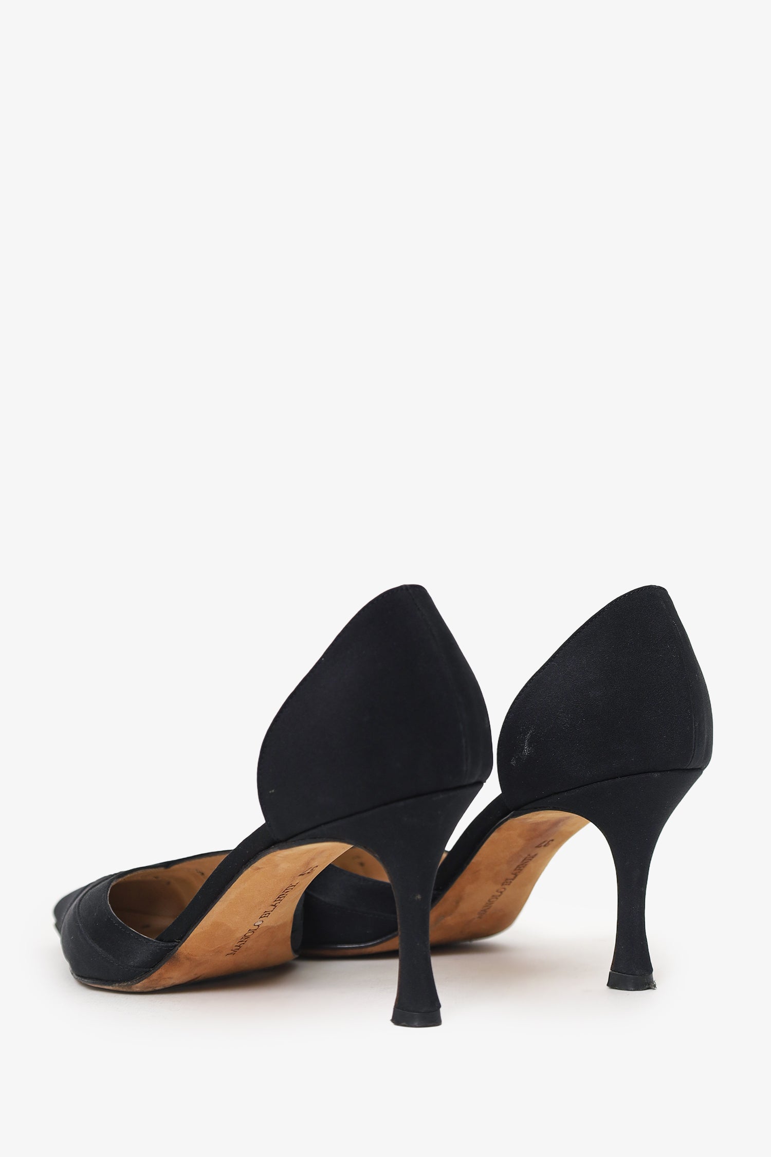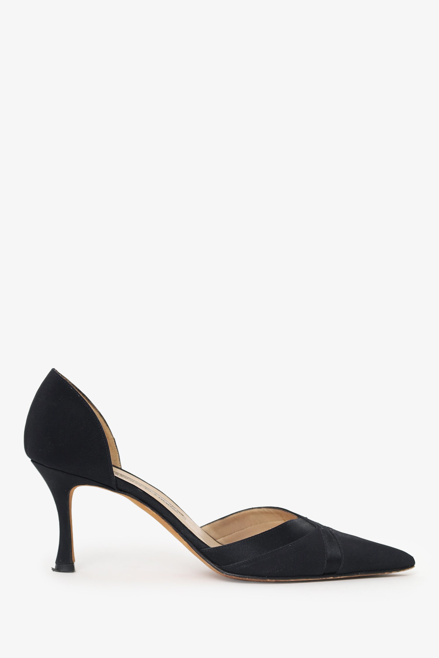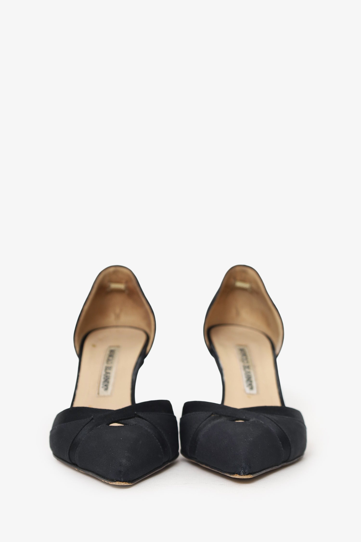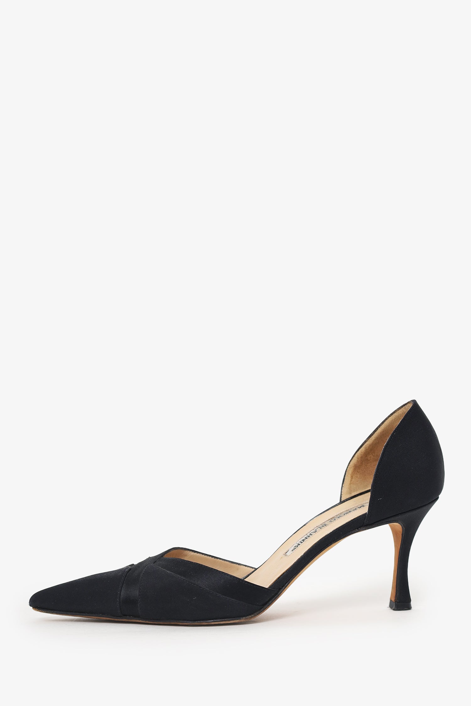 Refresh availabilityManolo Black Satin Pointed Heels. Slip-on. Pointed toe. Tonal stitching.