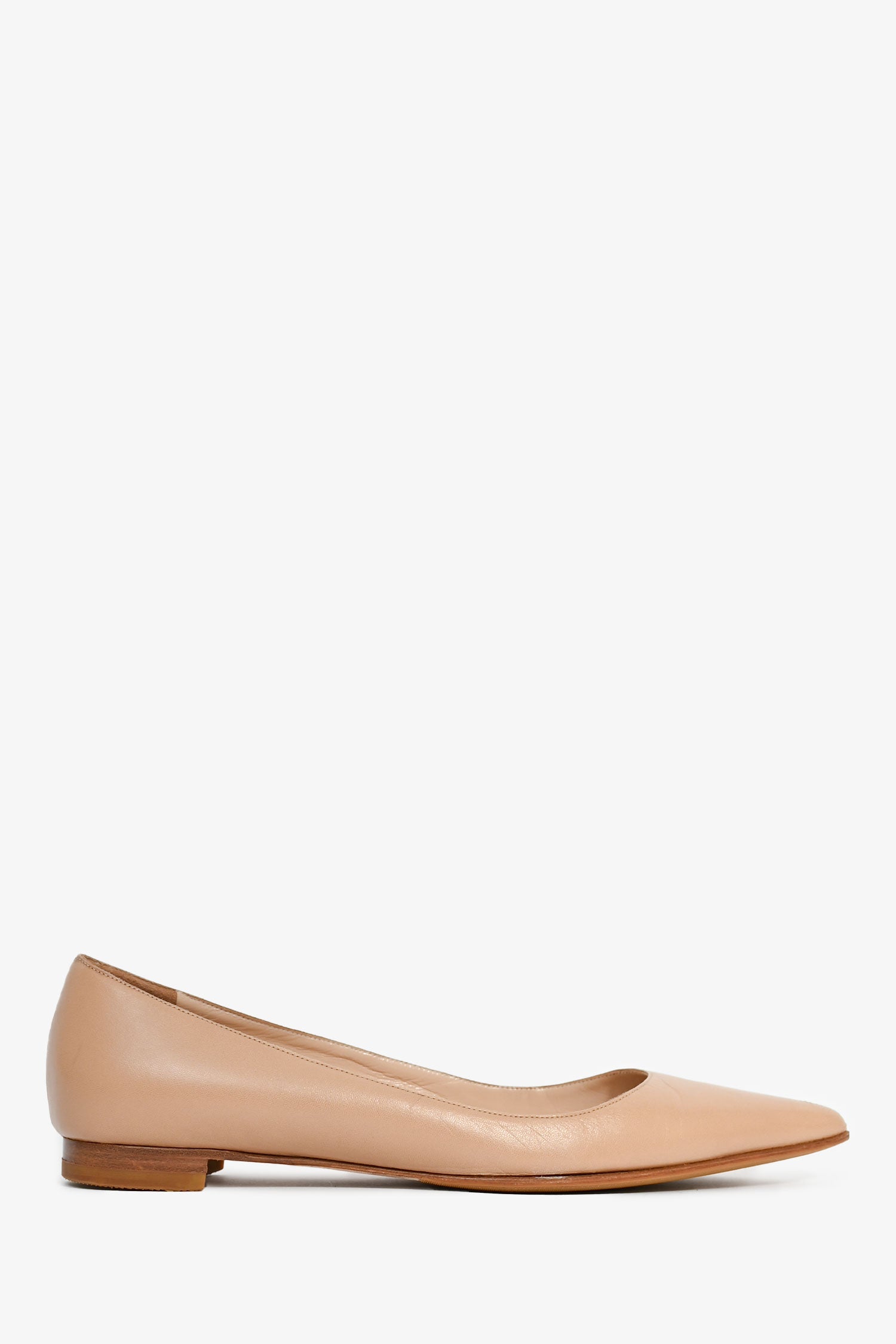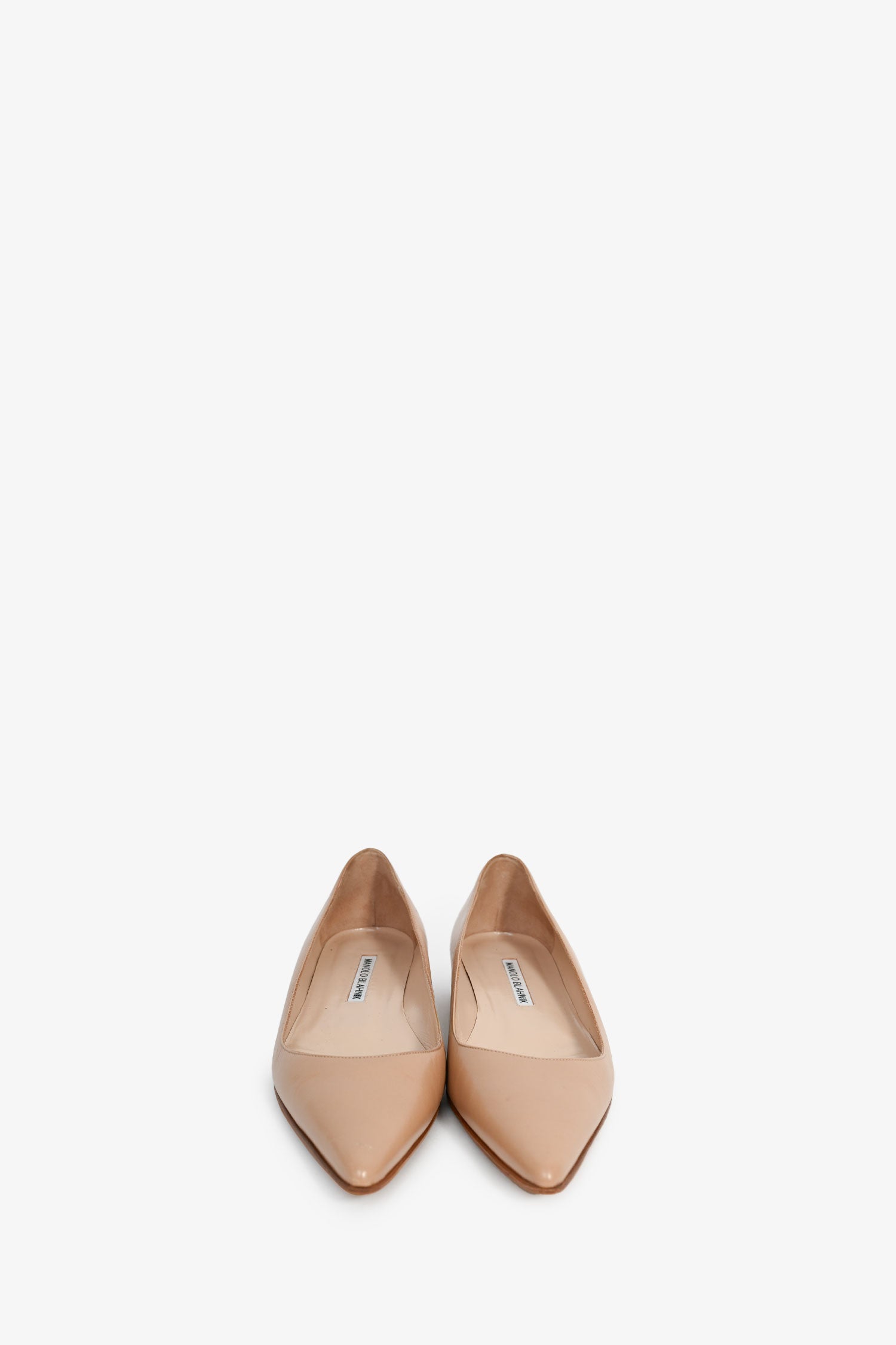Refresh availabilityManolo Blahnik Beige Leather Pointed Flats. Leather insoles. Pointed toe front. Tonal stitching.