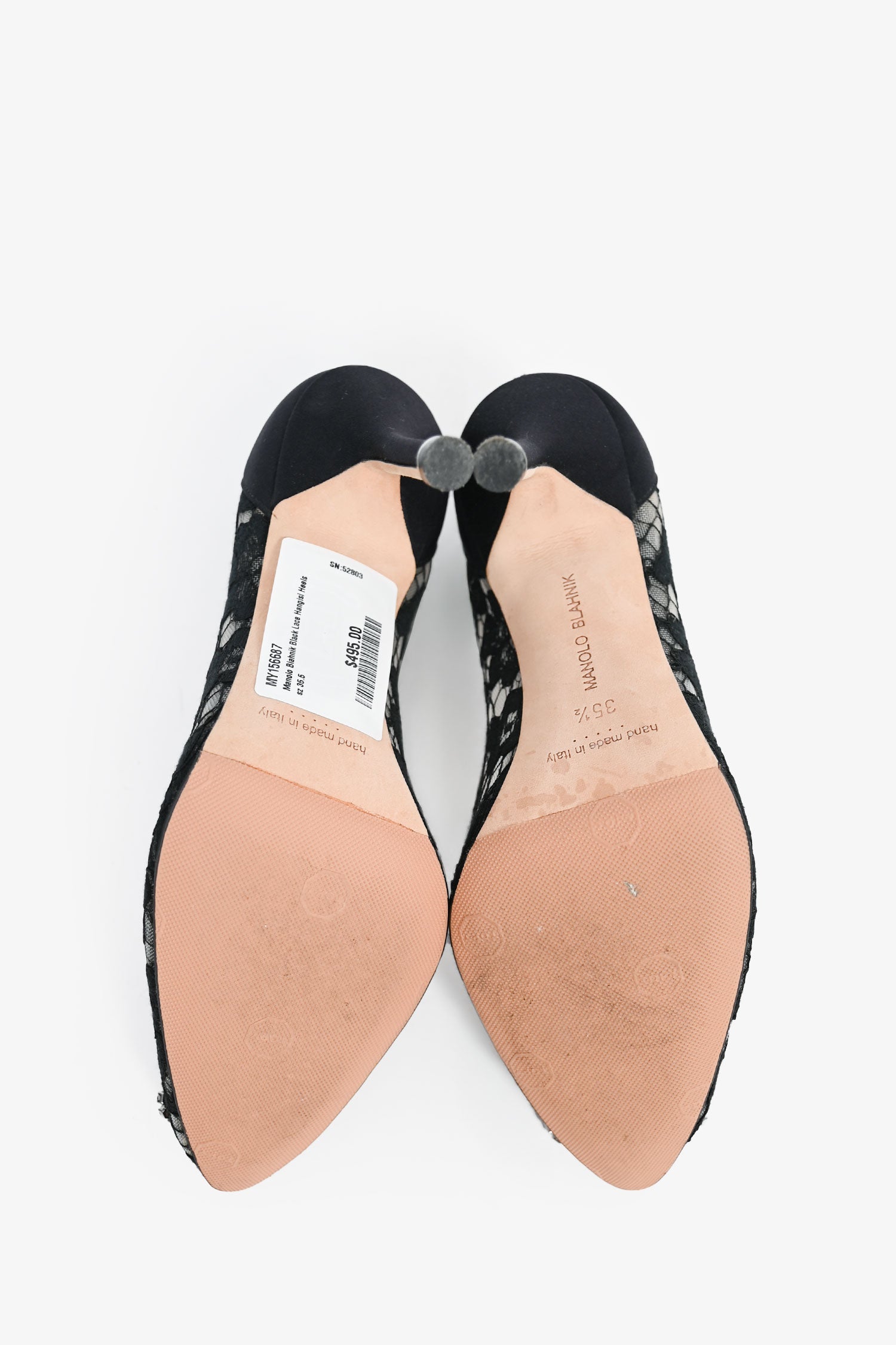 Manolo Blahnik Black Lace Hangisi Heels Size 35.5