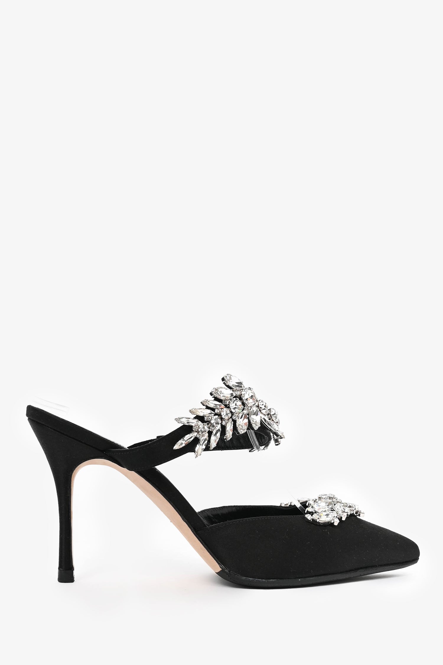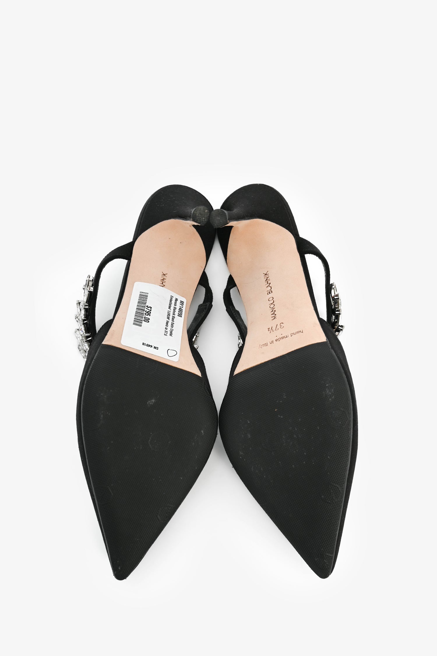 Manolo Blahnik Black Satin Crystal Embellished 'LURUM' Heels Size 37.5