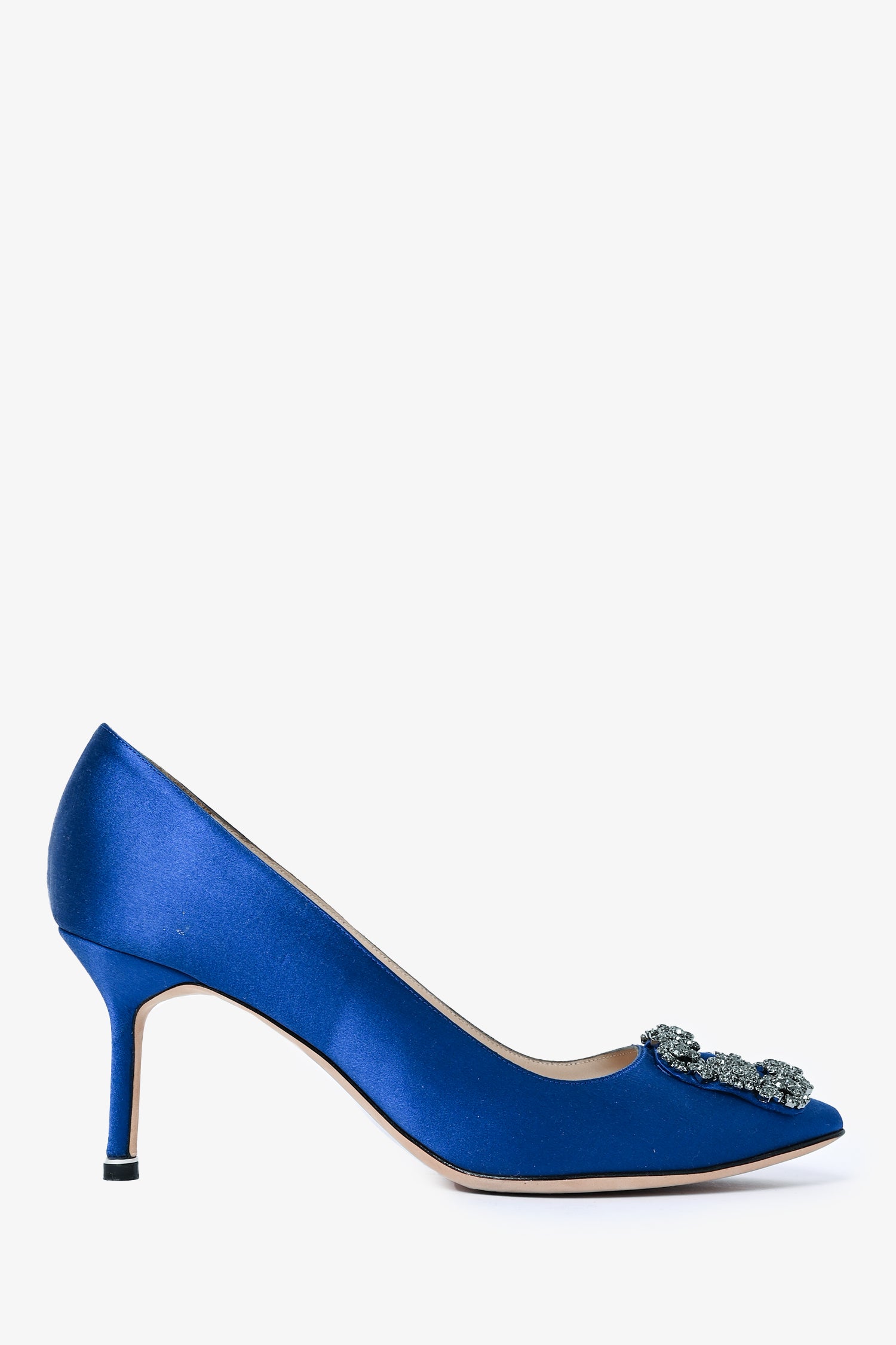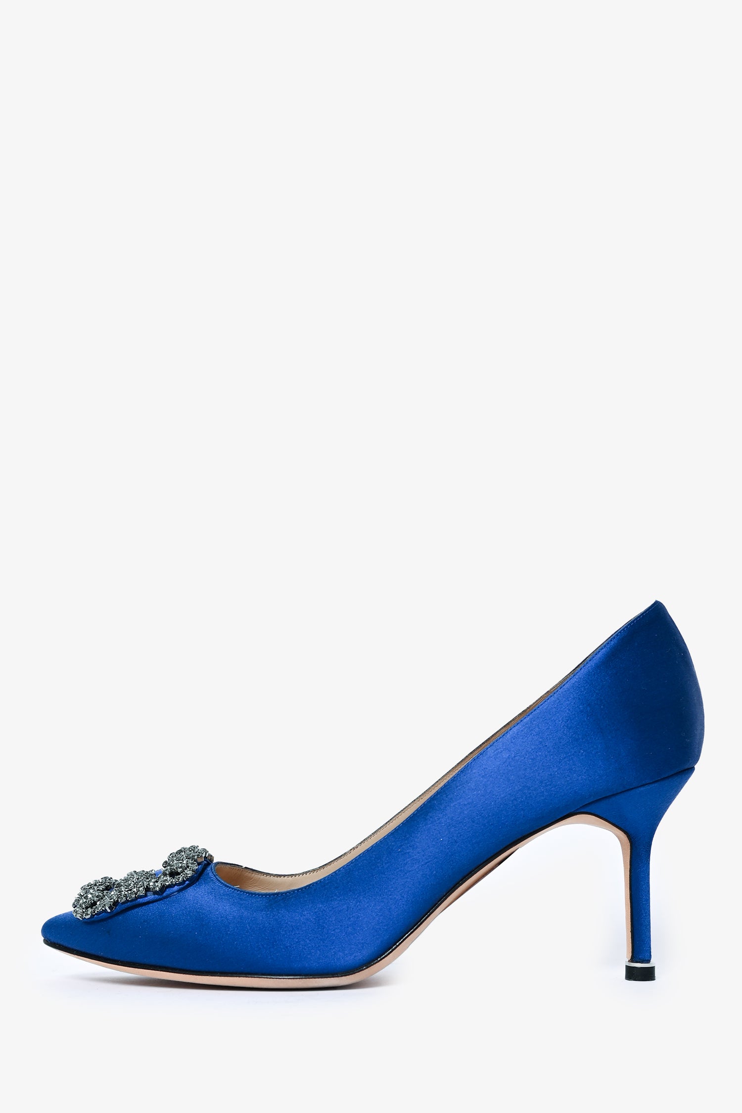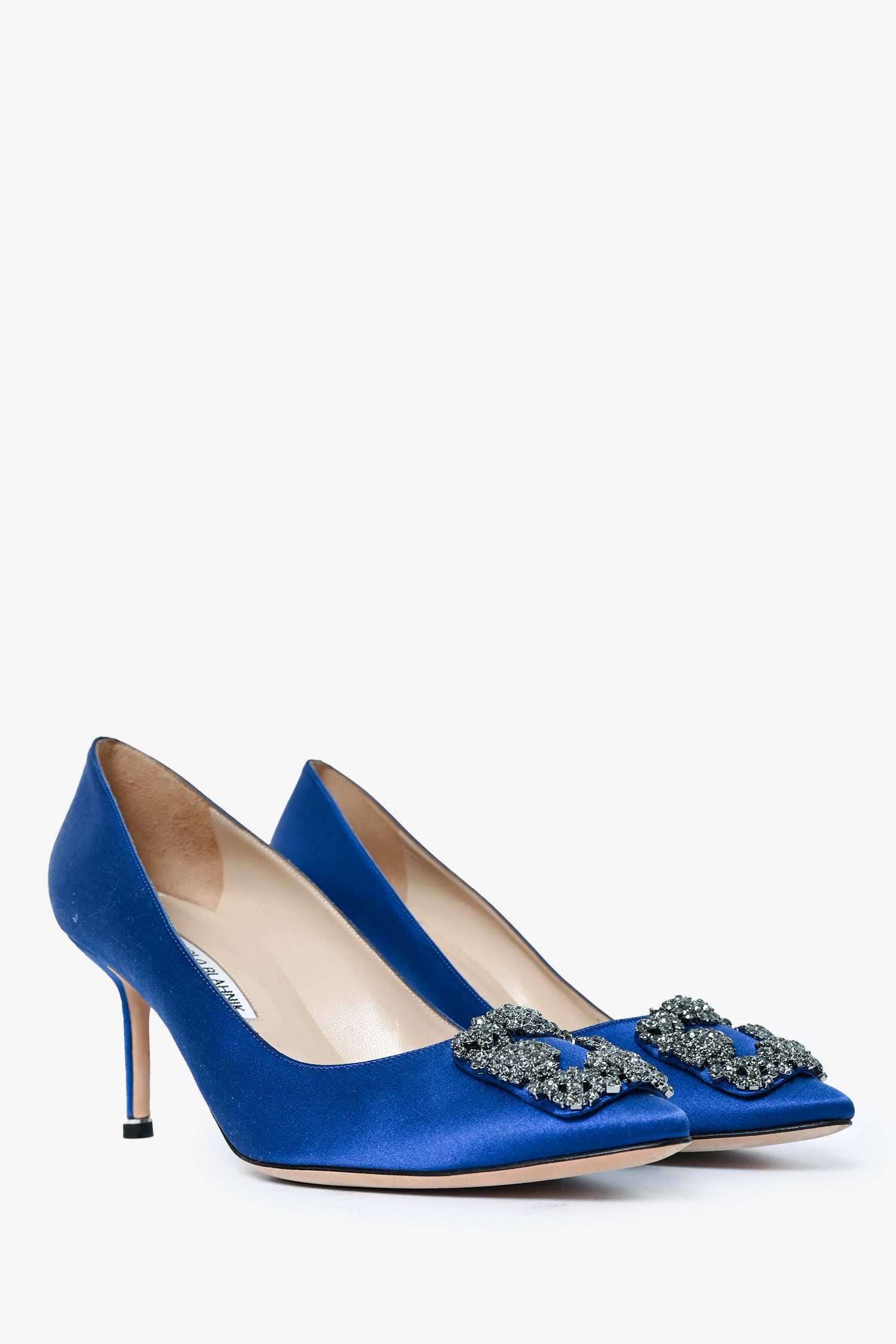 Refresh availabilityManolo Blahnik Blue Satin Hangisi 70 Heels Size 39.5. Slip on. Pointed toe.