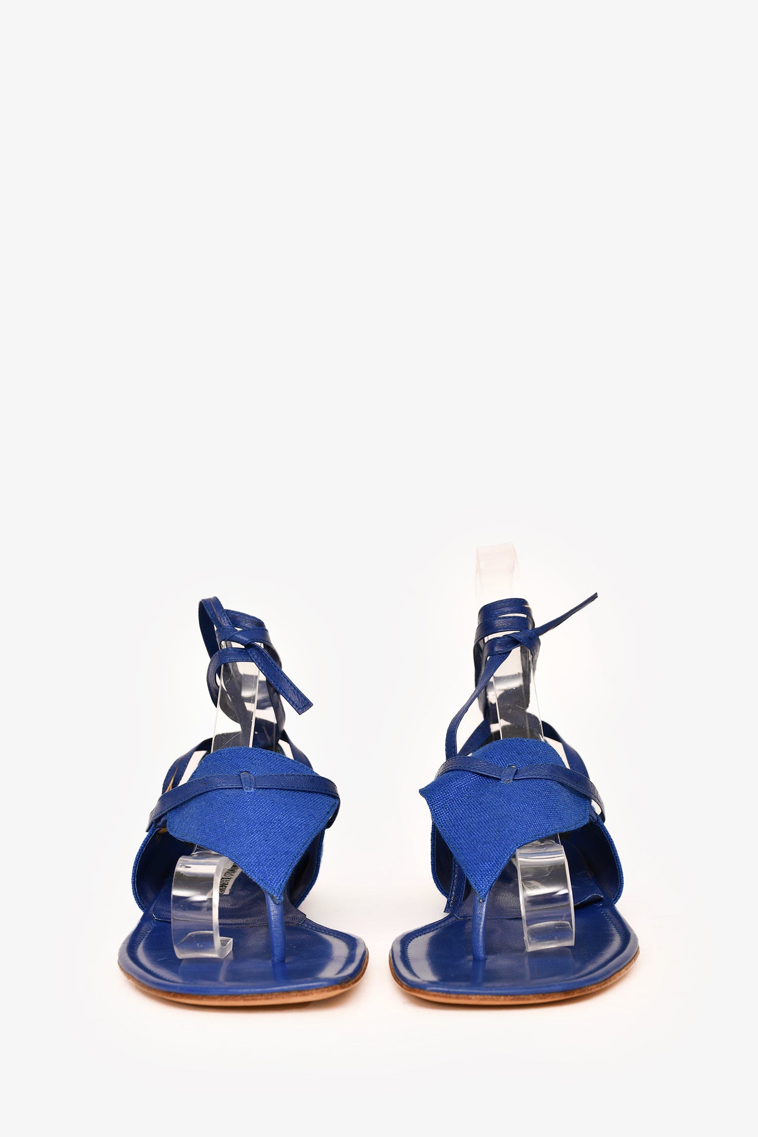 Manolo Blahnik Blue Suede/Leather Lace Up Sandals Size 38