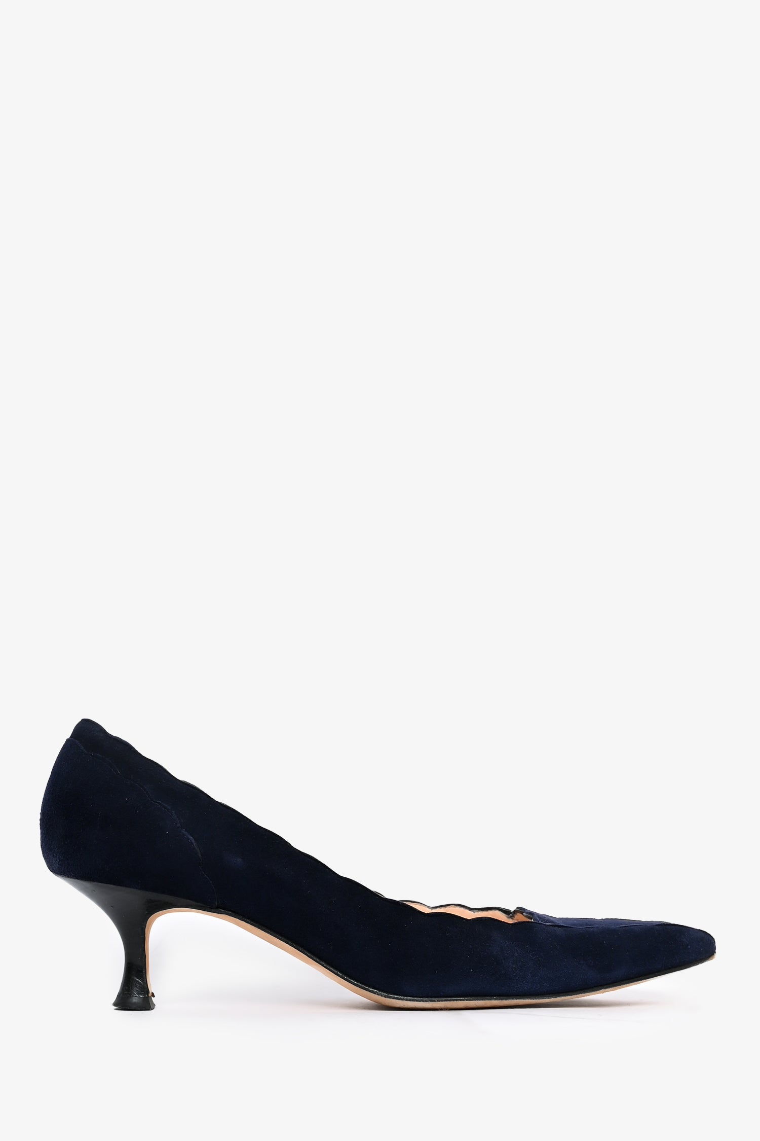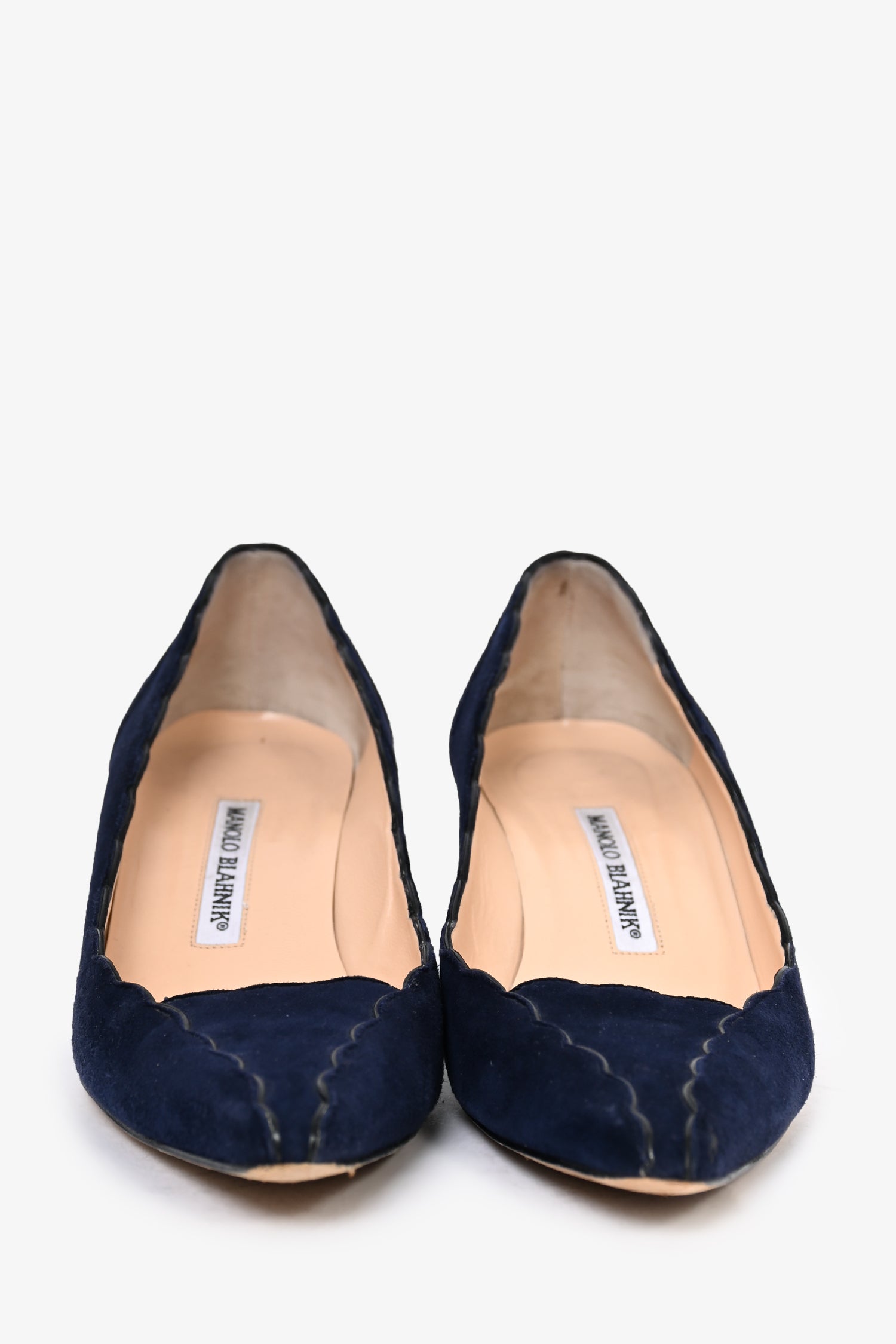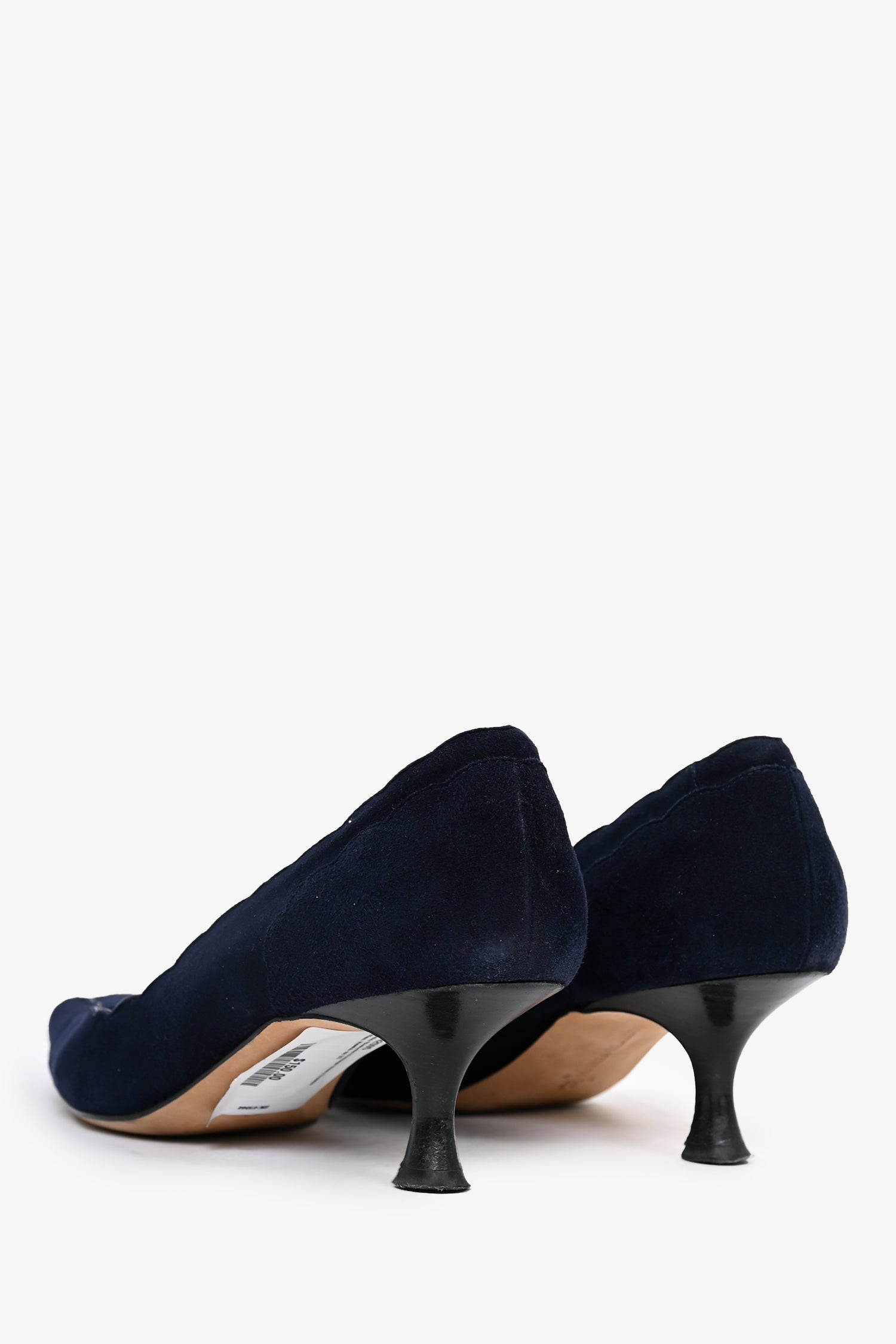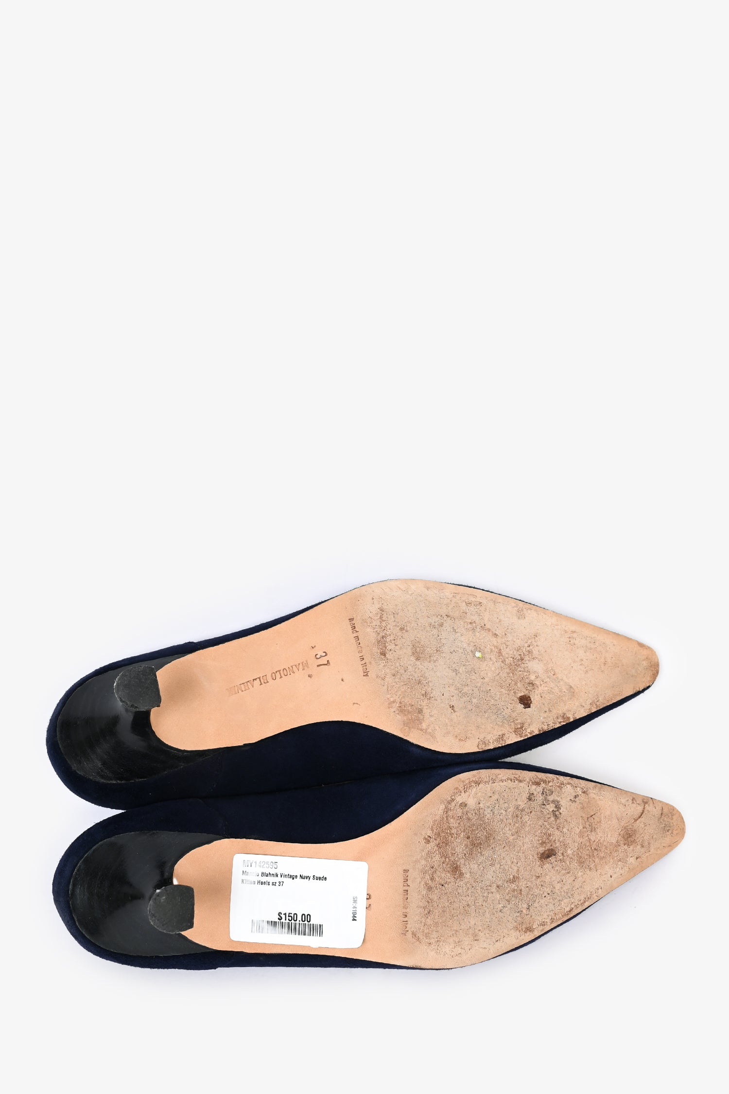 Refresh availabilityManolo Blahnik Vintage Navy Suede Kitten Heels. Slip-on. Pointed toe.