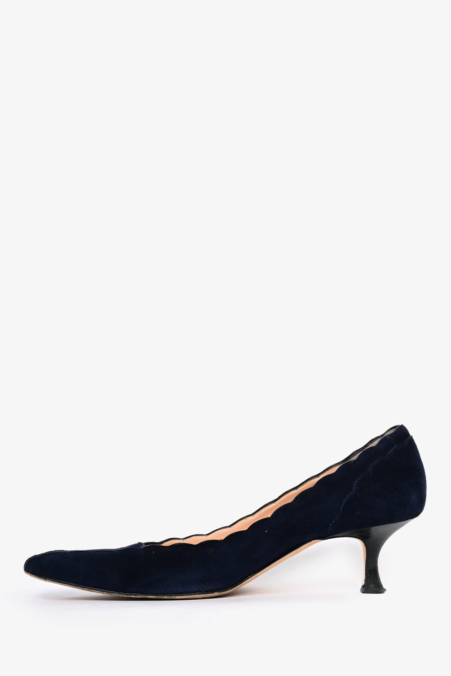 Manolo Blahnik Vintage Navy Suede Kitten Heels Size 37