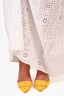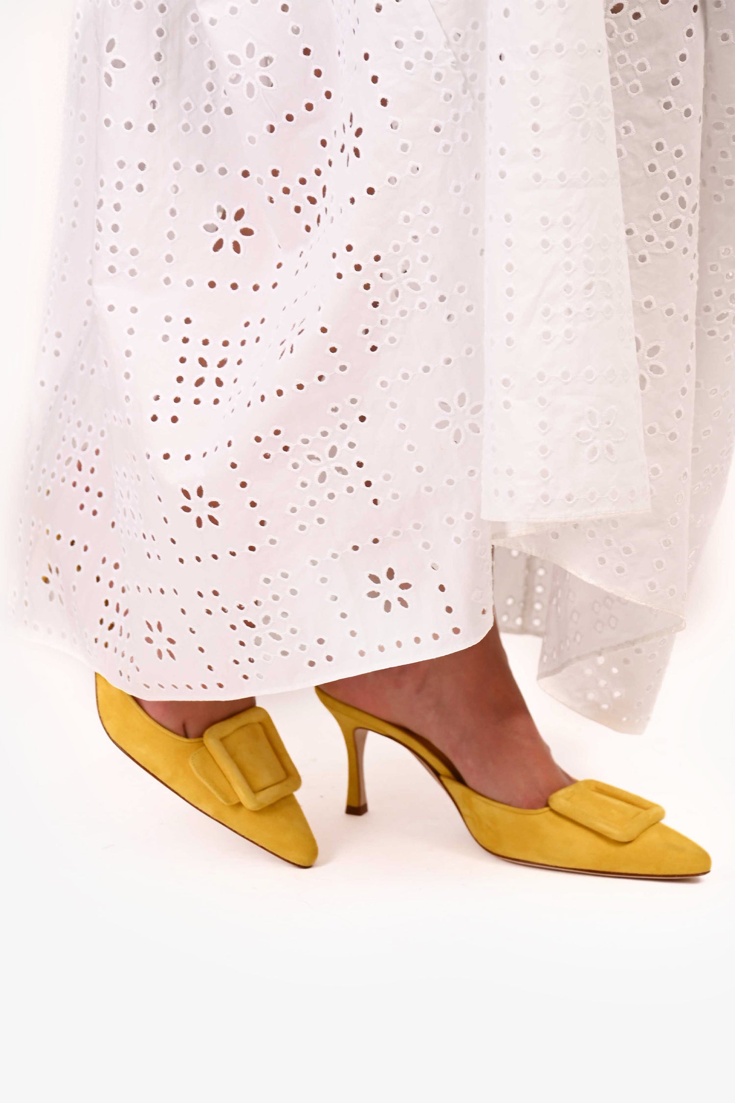 Refresh availabilityManolo Blahnik Yellow Suede Maysala 70 Mule Heels. Pointed-toe. Slip-on. Tonal stitching.