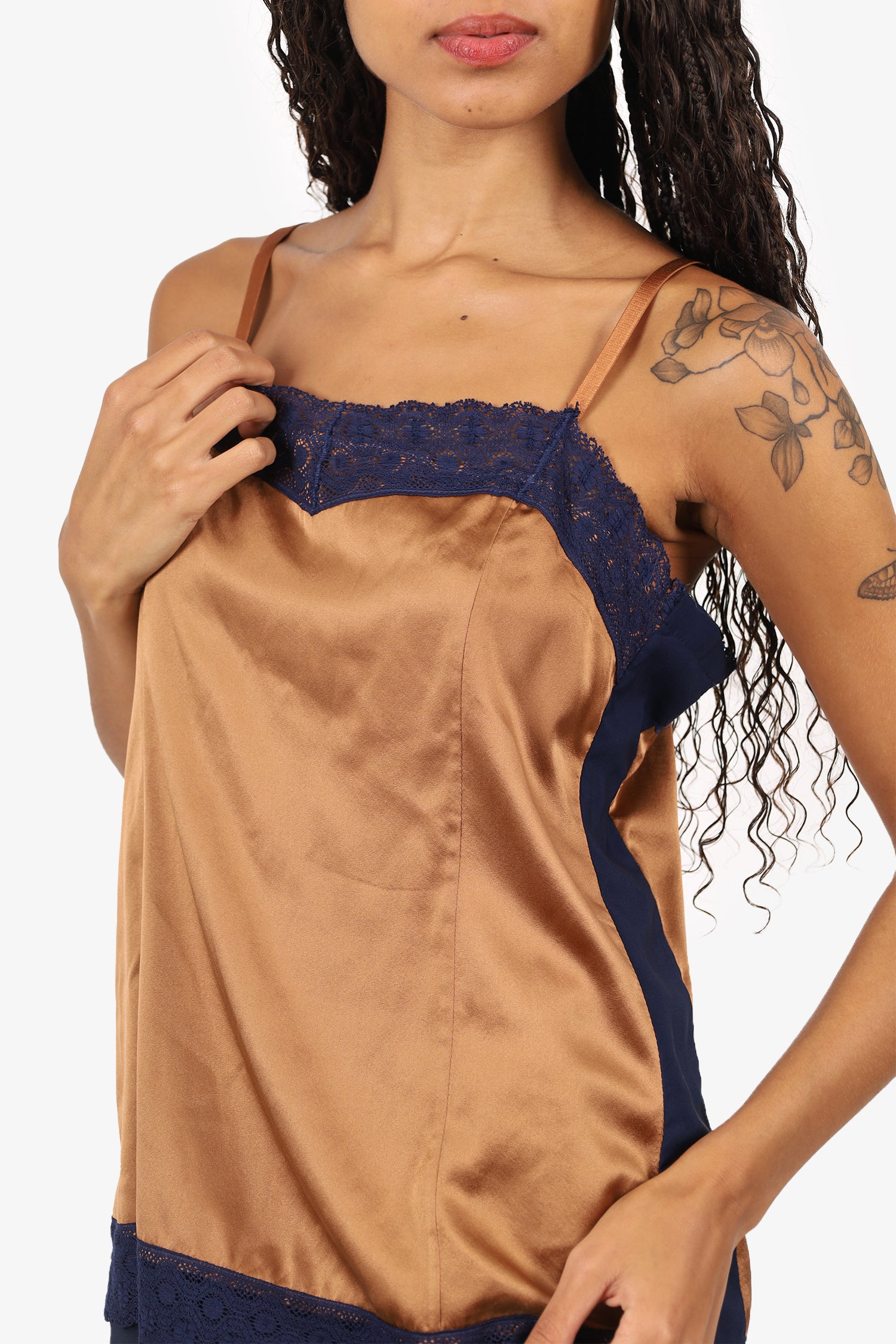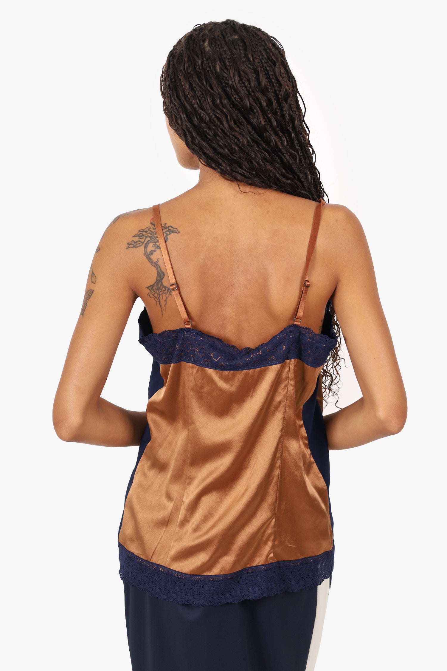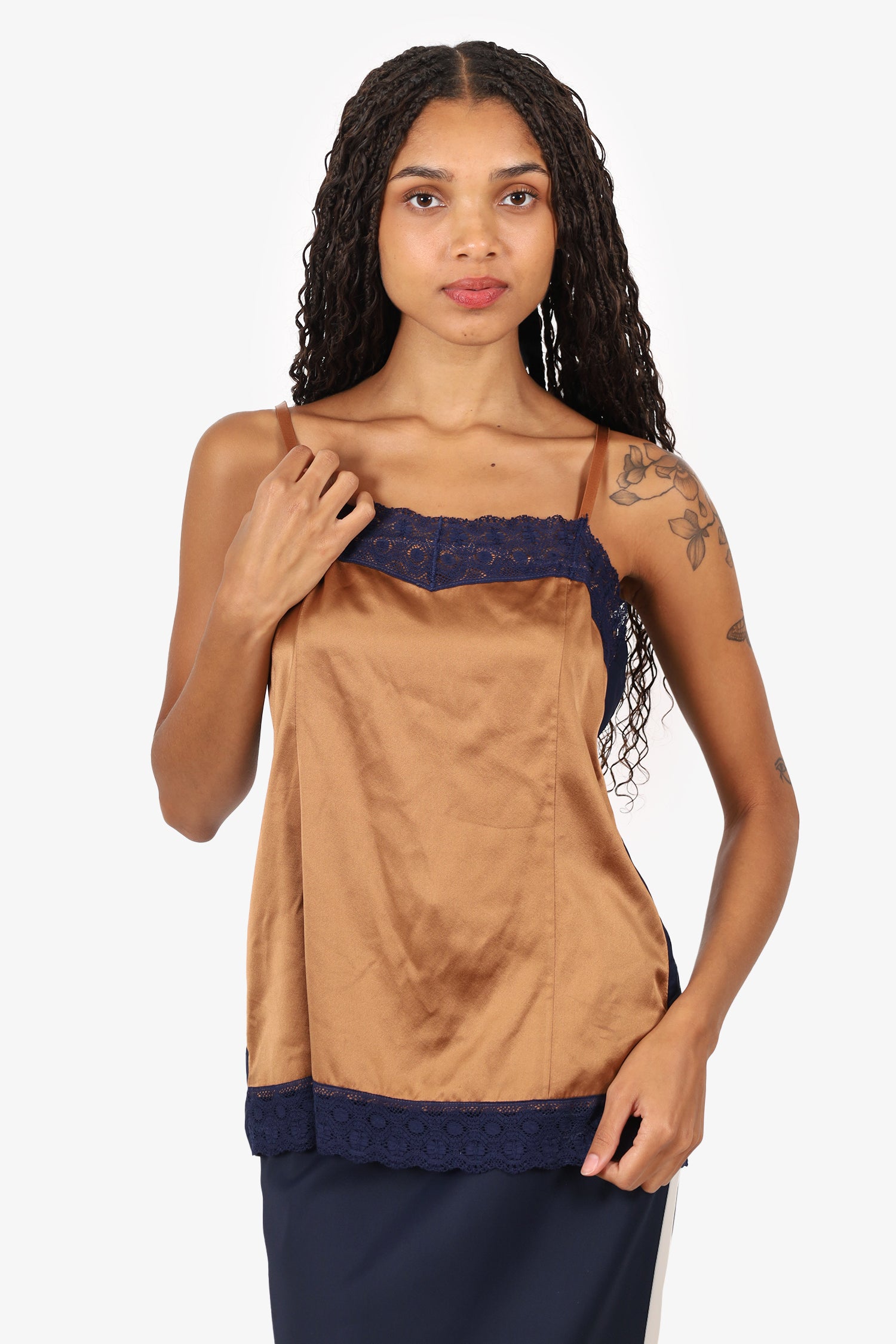 Marc Cain Brown/Navy Silk Lace Trim Strappy Top Size 1