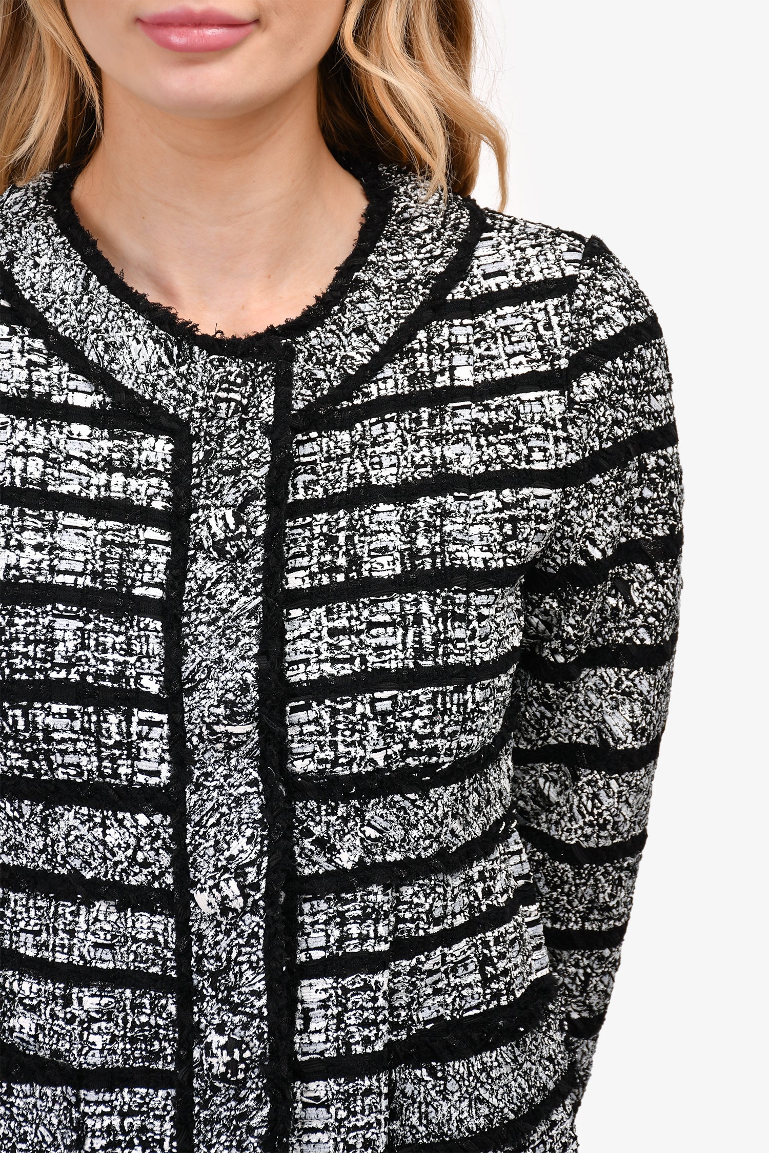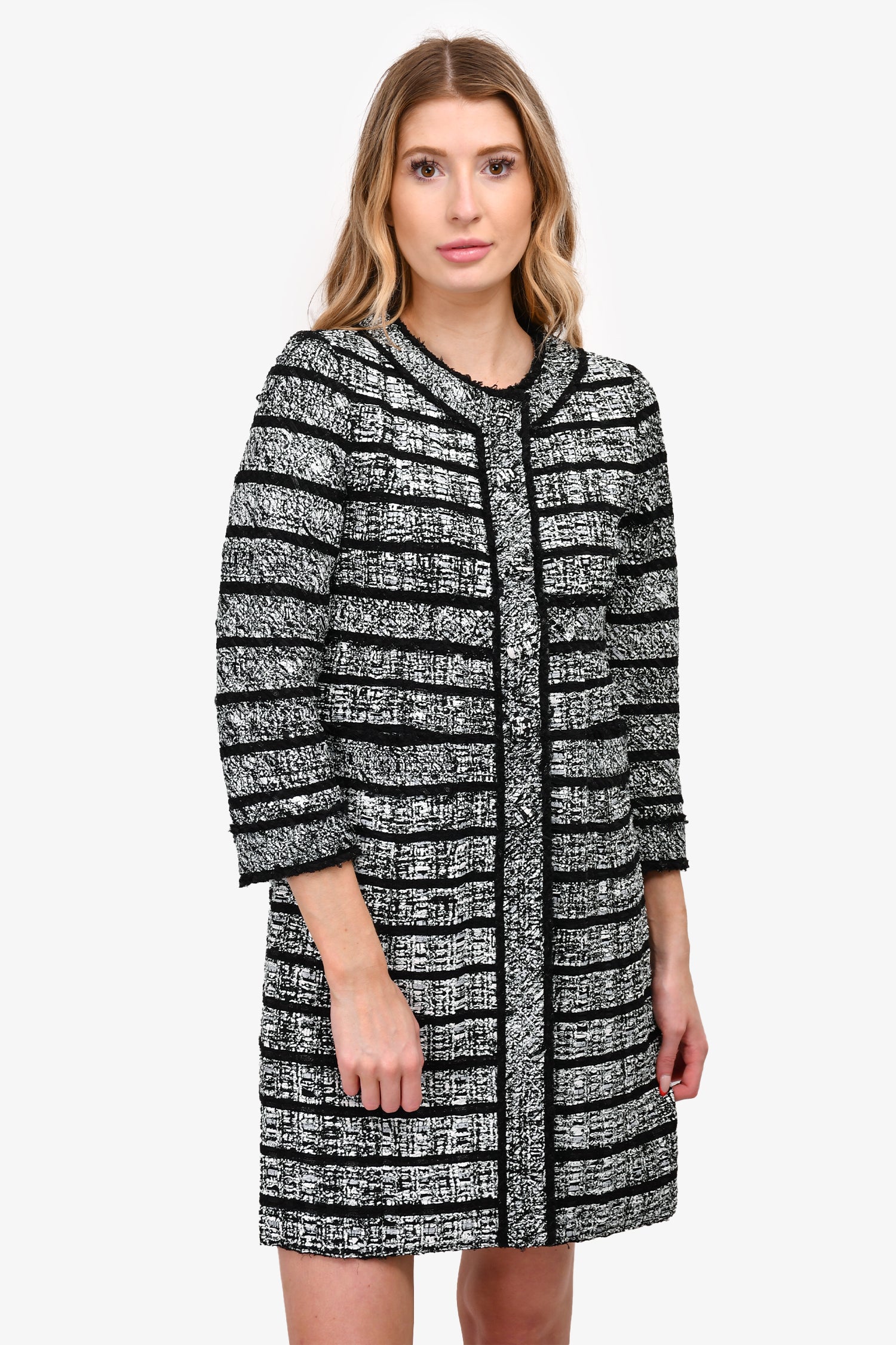 Refresh availabilityMarc Jacobs Black/White Tweed Long Coat. Front button up closure. Tonal stitching.