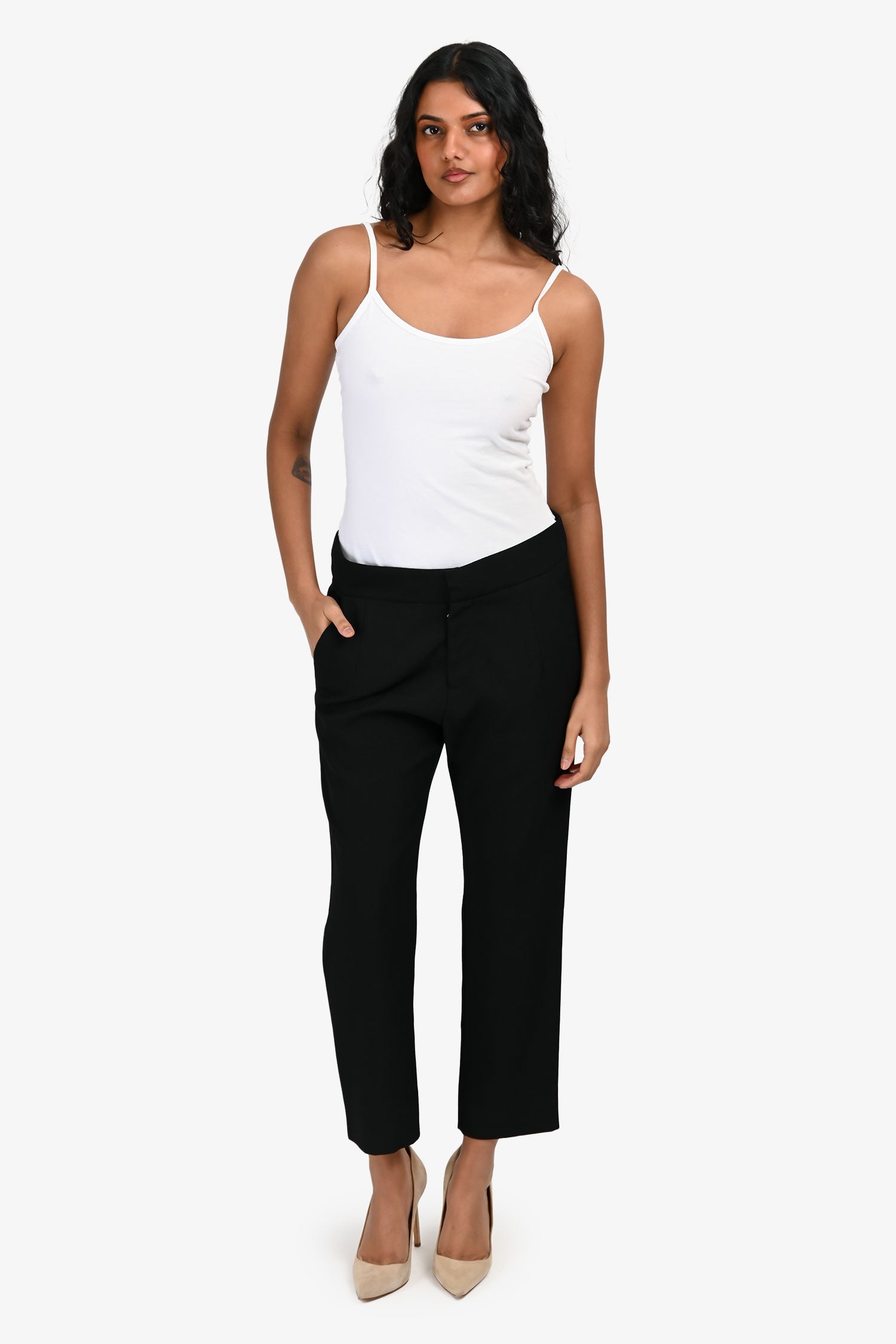 Refresh availabilityMarni Black Wool High Waisted Pants. Pull-on. Hidden zipper and hook-and-eye closure in the front. 2 slip pockets on the sides. 2 welt pockets in the back. Gold-tone hardware. Tonal stitching.