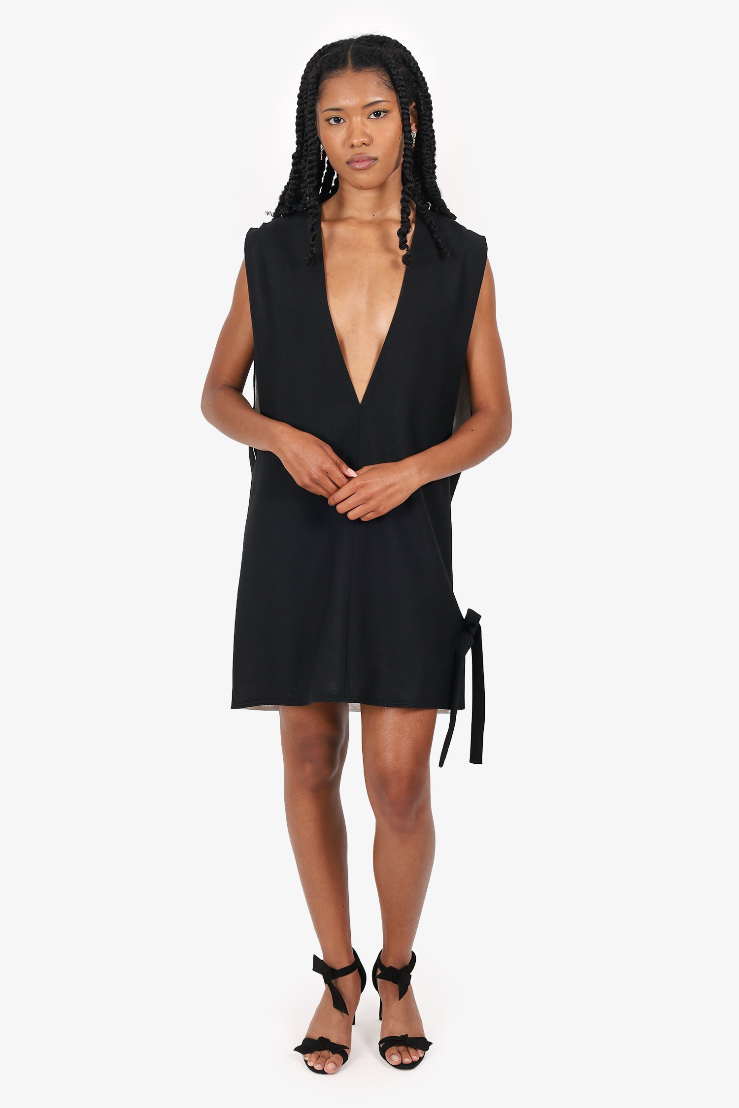 Refresh availabilityMarni Black Wool Plunging V-Neck Dress. Pull on. Plunge V-neckline. Bottom left slit with tie-up closure. Lined interior. Tonal stitching.