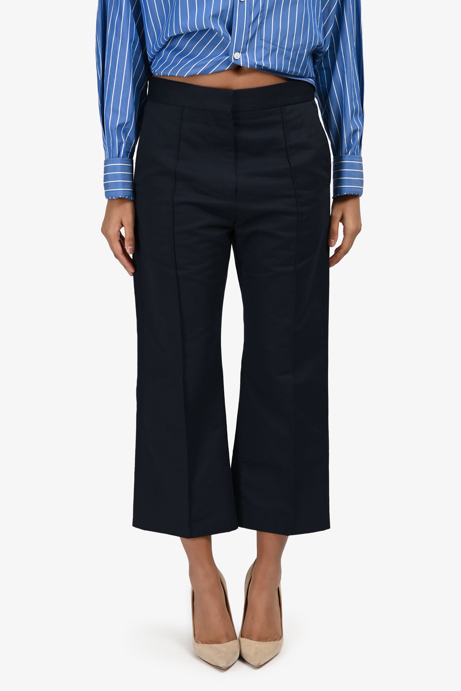 Marni Blue Cotton Straight Leg Cropped Trousers Size 40