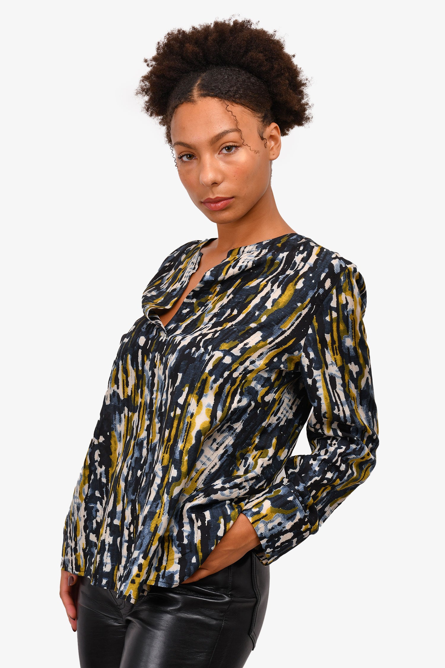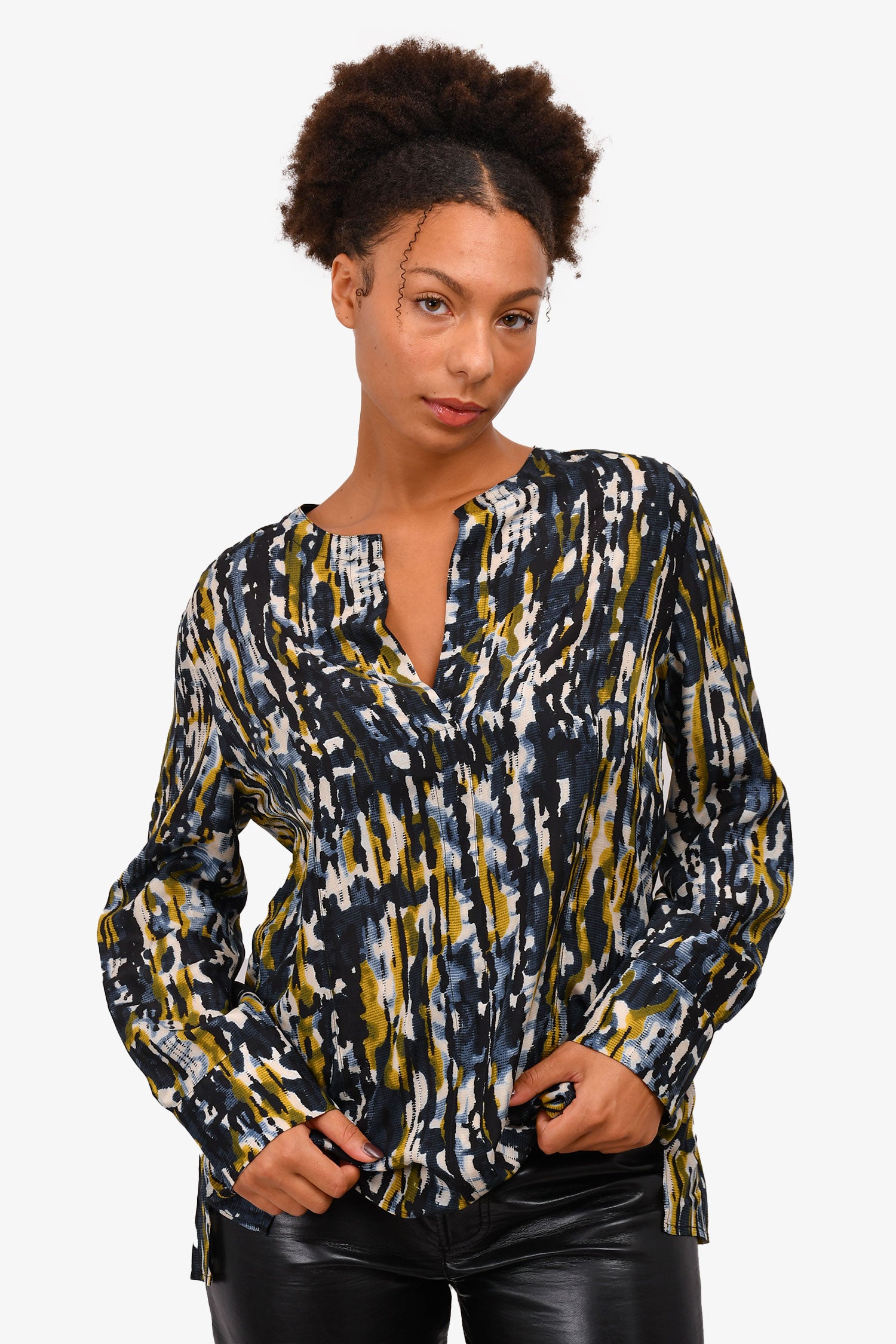 Refresh availabilityMarni Blue/Green Watercolour Silk Blouse. Pull-on. Button closure on the cuffs.