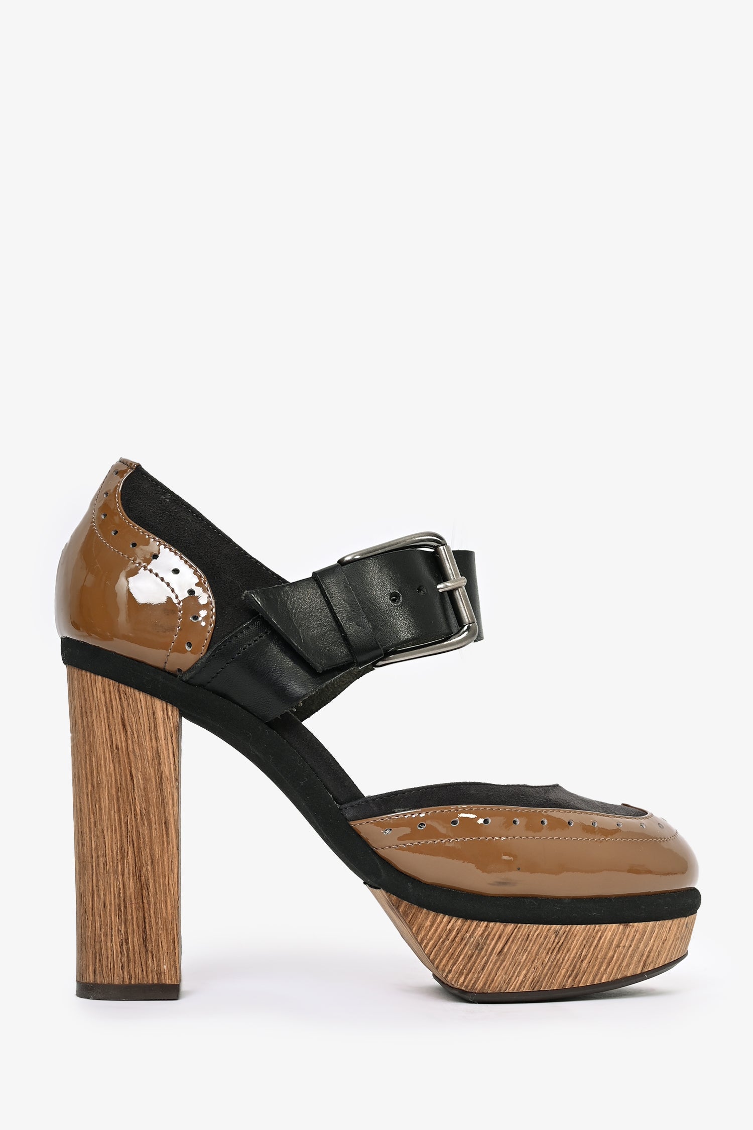 Refresh availabilityMarni Brown/Black Patent Leather/Leather Platform Block Heel.