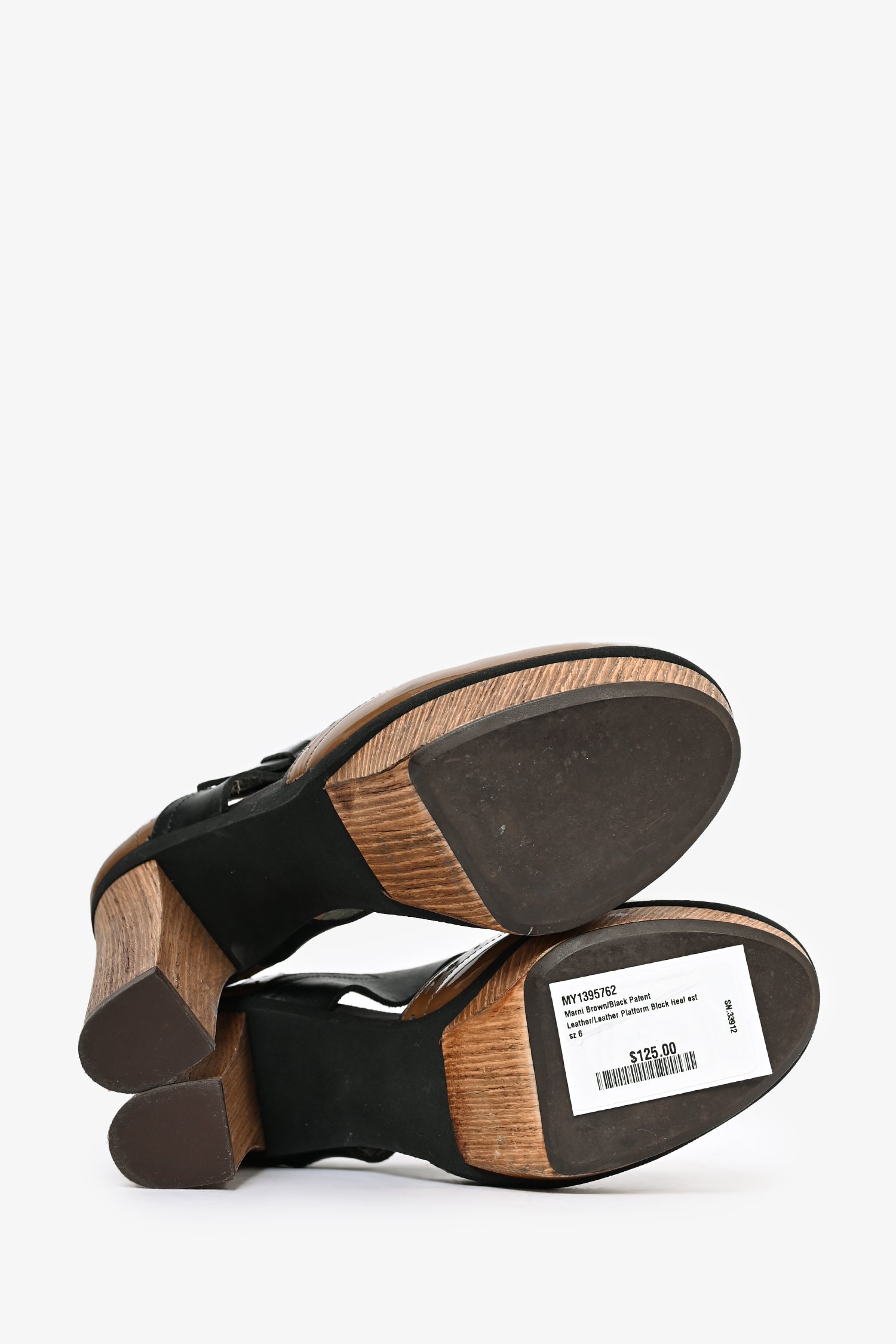 Marni Brown/Black Patent Leather/Leather Platform Block Heel Est Size 6