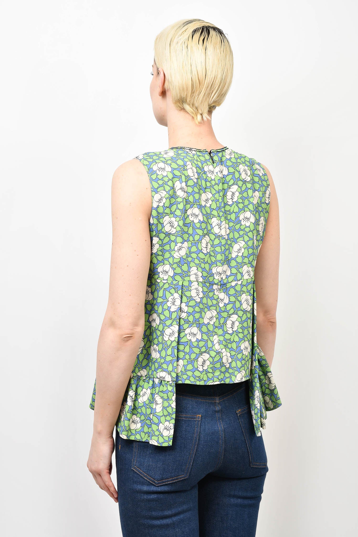 Refresh availabilityMarni Green Floral Sleeveless Top. Pleated details at bottom. Vent details at rear. Hidden zip closure at rear. Tonal and contrast stitching.