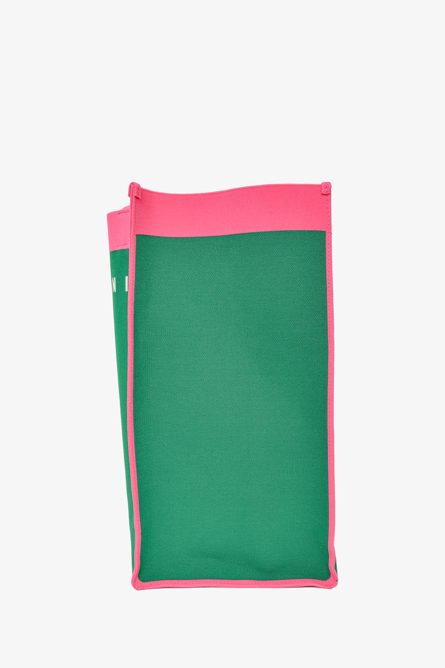 Marni Green/Pink Canvas Large Tote with Leather Pouch