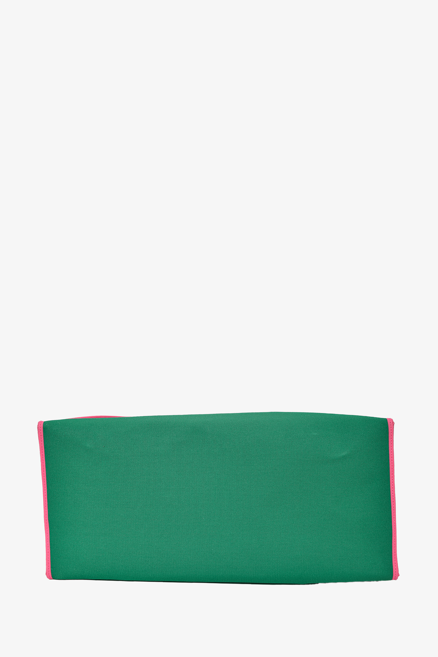 Refresh availabilityMarni Green/Pink Canvas Large Tote with Leather Pouch. Twin handles. Interior zip pouch. Tonal stitching.