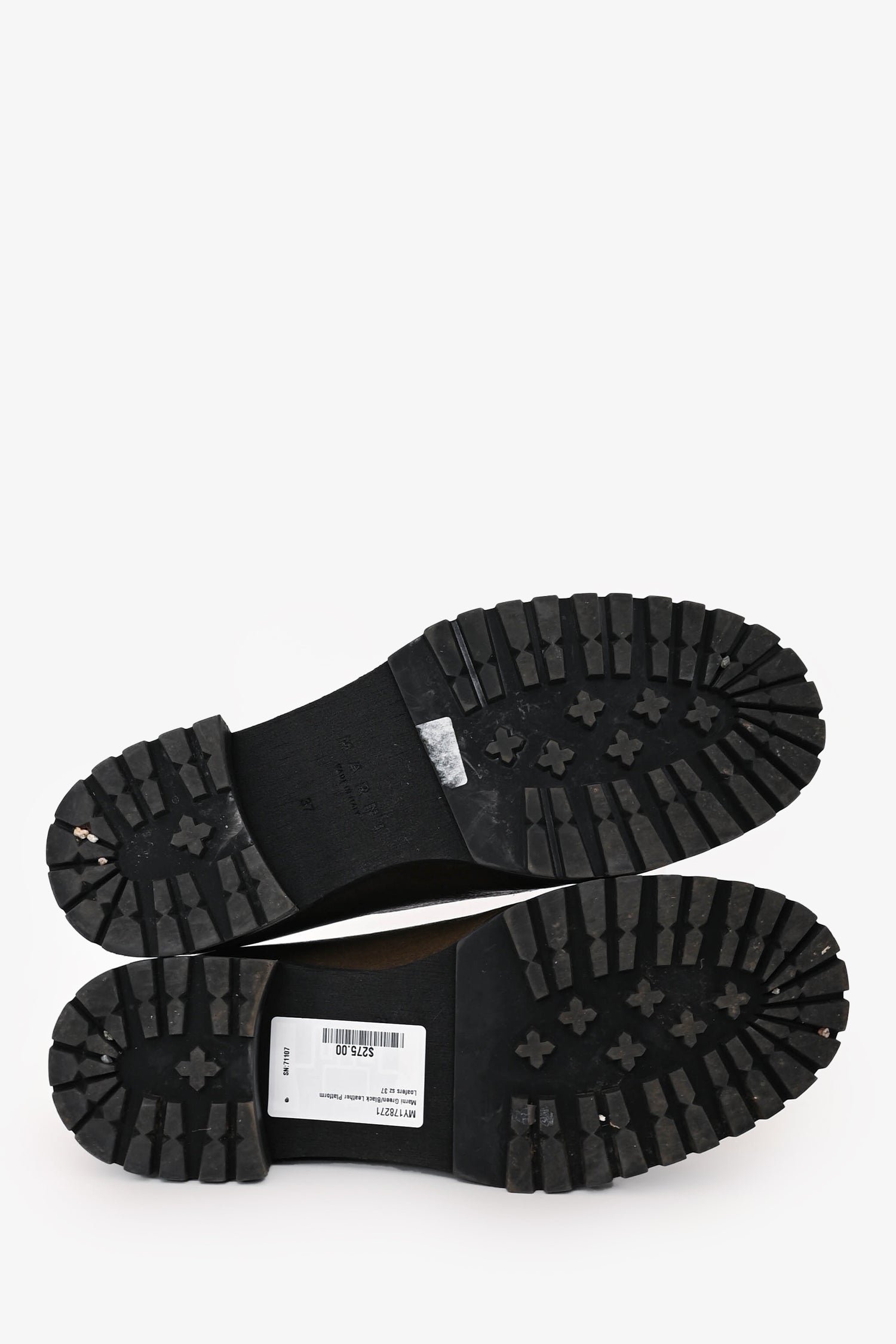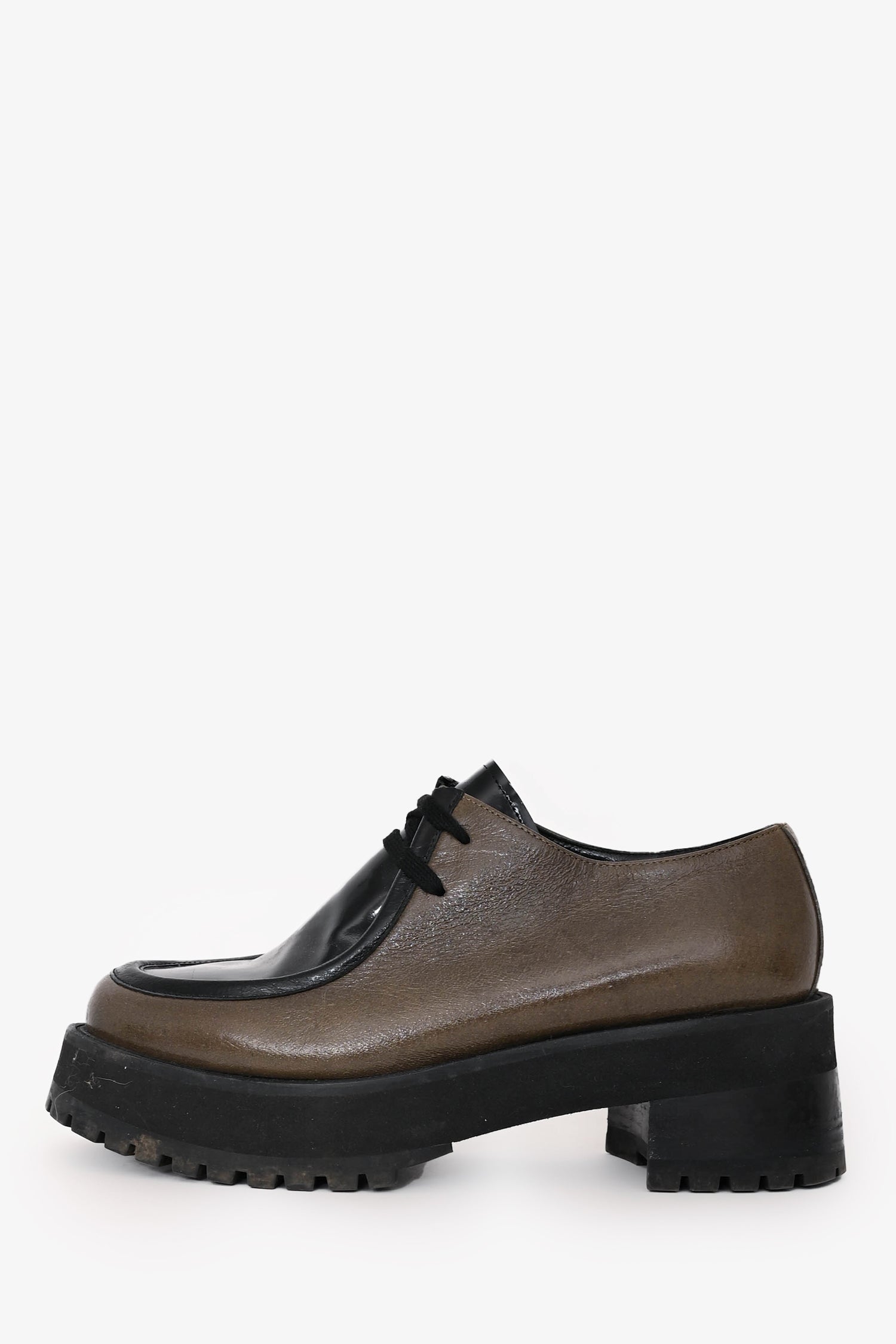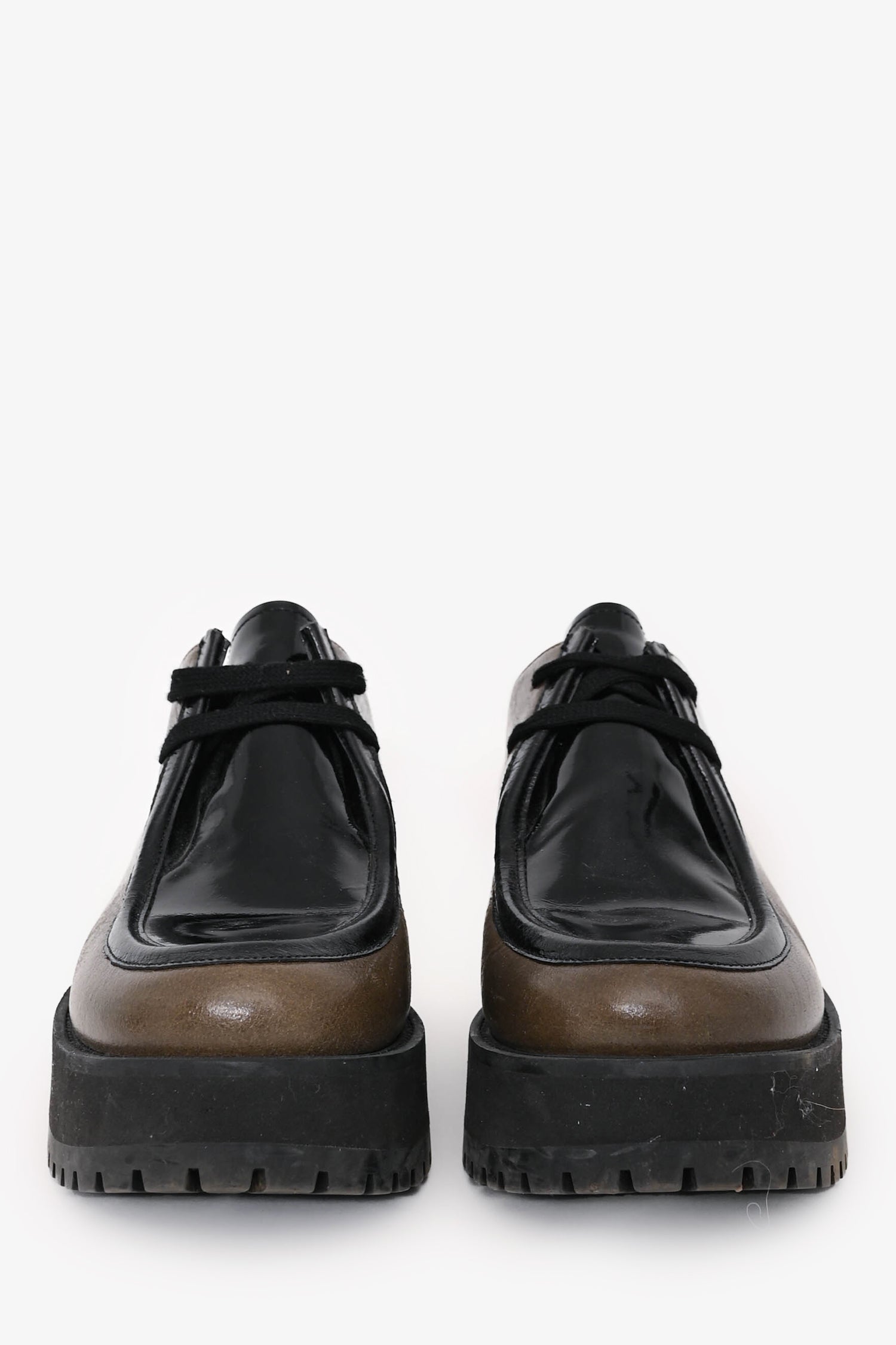 Refresh availabilityMarni Green/Black Leather Platform Loafers. Slip-on. Round toe. Top lace-up closure. Tonal stitching.