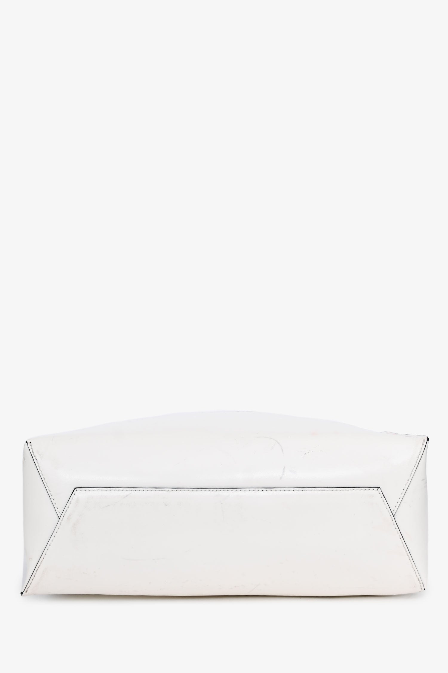 Condition: This item is in fair pre-loved condition and sold as is. Visible scuffing and staining on exterior white leather and bag bottom. Stains on the interior slip pocket and interior leather.